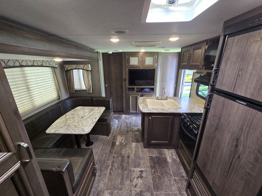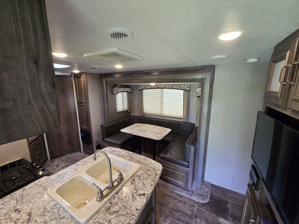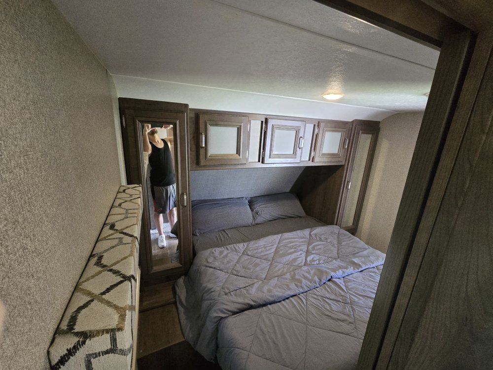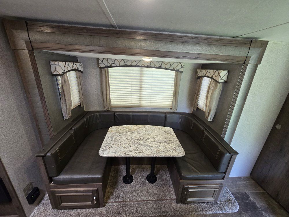 Layout: Private room, U-table (slide out), oversized bunk beds, full kitchen, full bathroom, outside kitchen and shower.
