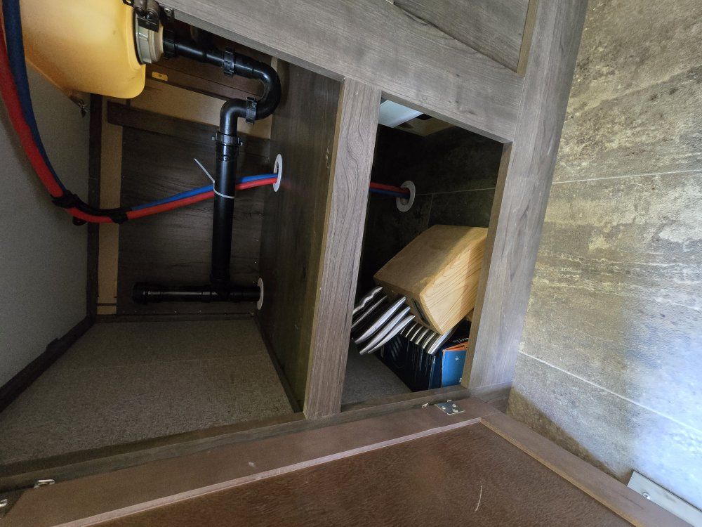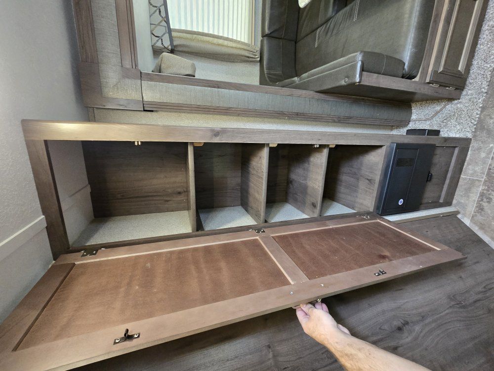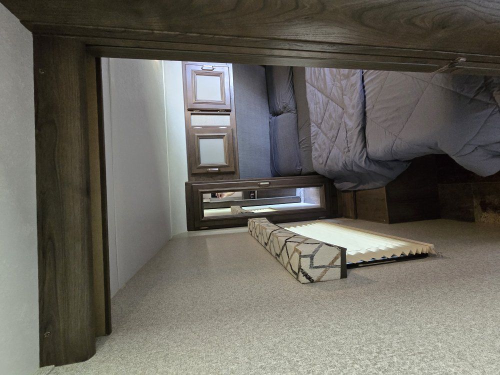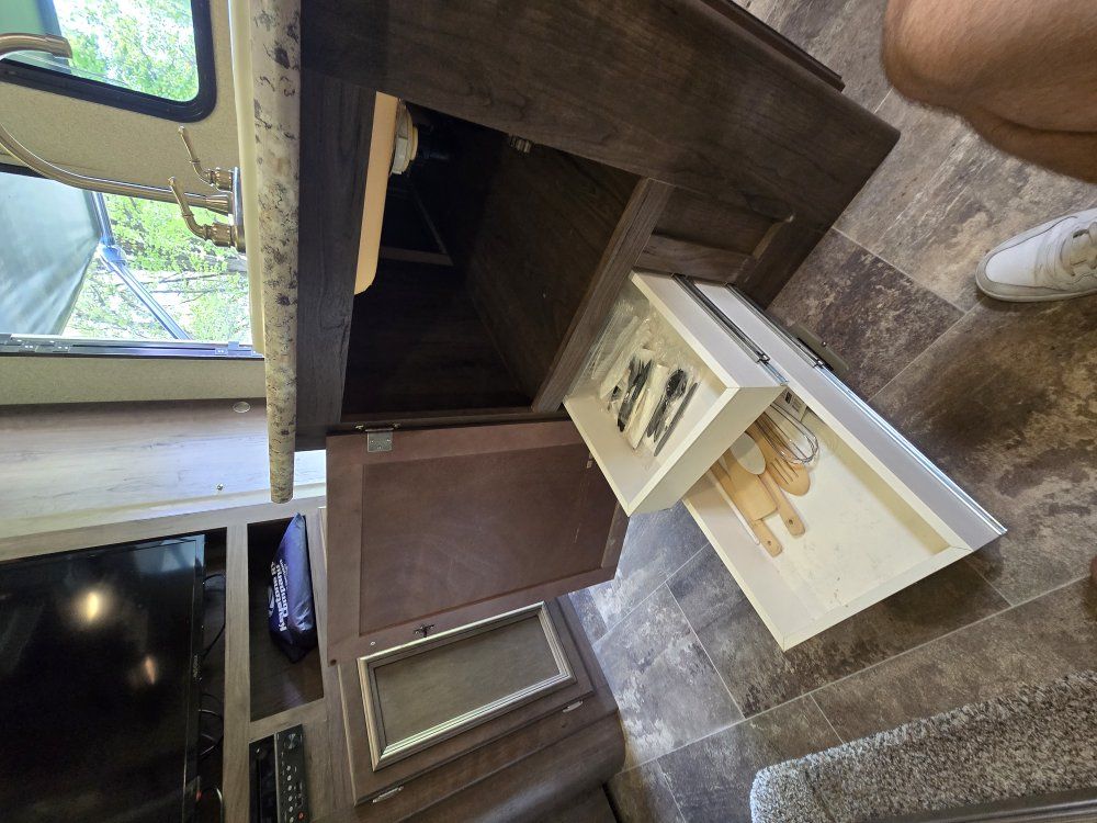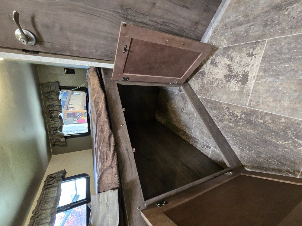 Layout: Private room, U-table (slide out), oversized bunk beds, full kitchen, full bathroom, outside kitchen and shower.