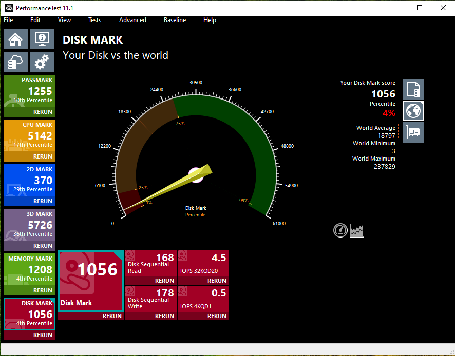 See the attched photos for system hardware info. I've also attached passmark metrics on it. As you can see, it struggles mightily in many areas since the CPU and motherboard were never replaced.