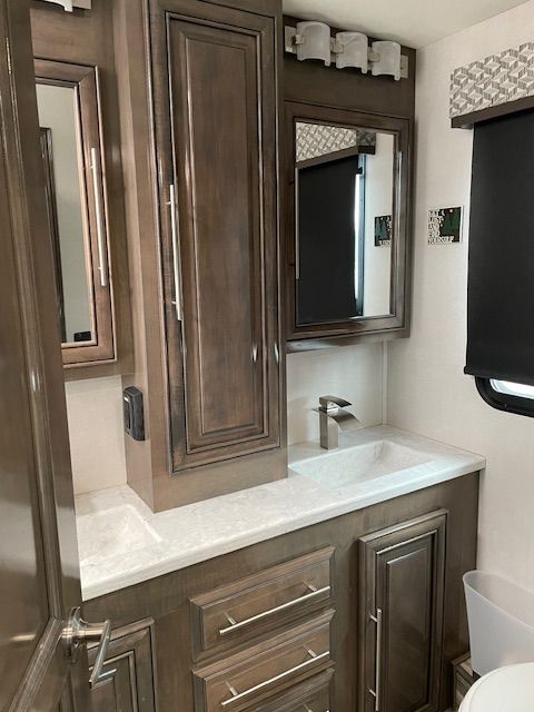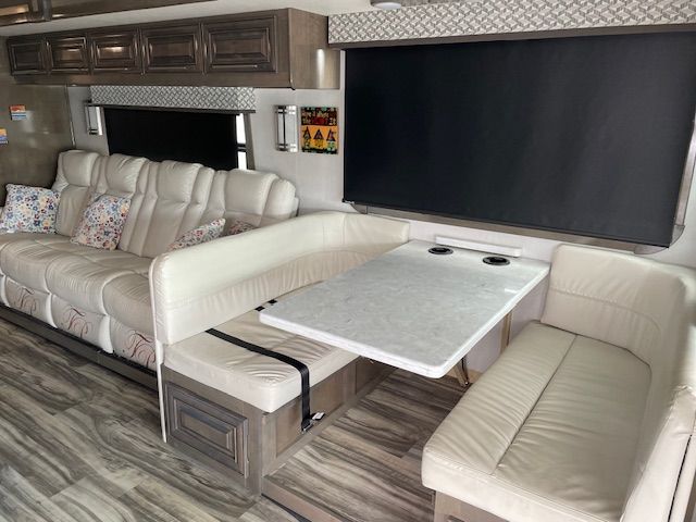 Travel in luxury in this 38 foot motorhome by Forest River. 4 leather theater seats that recline with 2 of them that are heated and massage. 1 1/2 baths. Washer and dryer. Large 7000 w generator. Drop down queen size bunk bed. King size power tilt bed with purple mattress. Full size refrigerator. 2 slide outs. Hydraulic leveling jacks. Combo convection/microwave oven. V-10 Gas engine. 2 AC units. Fireplace. Much more. Will consider trade for smaller RV or newer pickup truck.