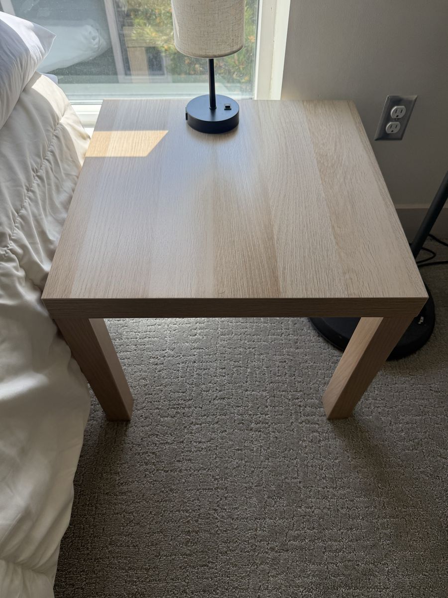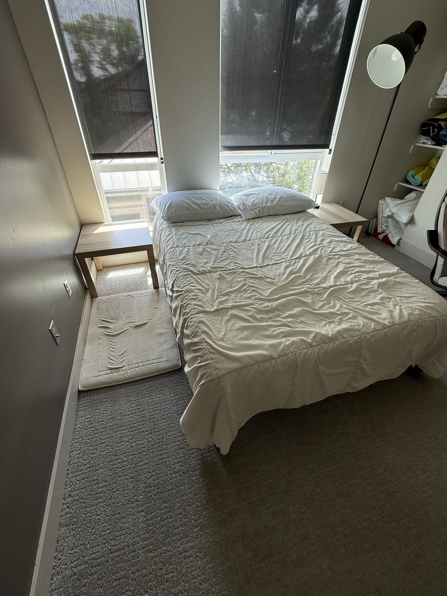 ApplePaySerta mattress, metal platform bedframe, two ikea nightstands