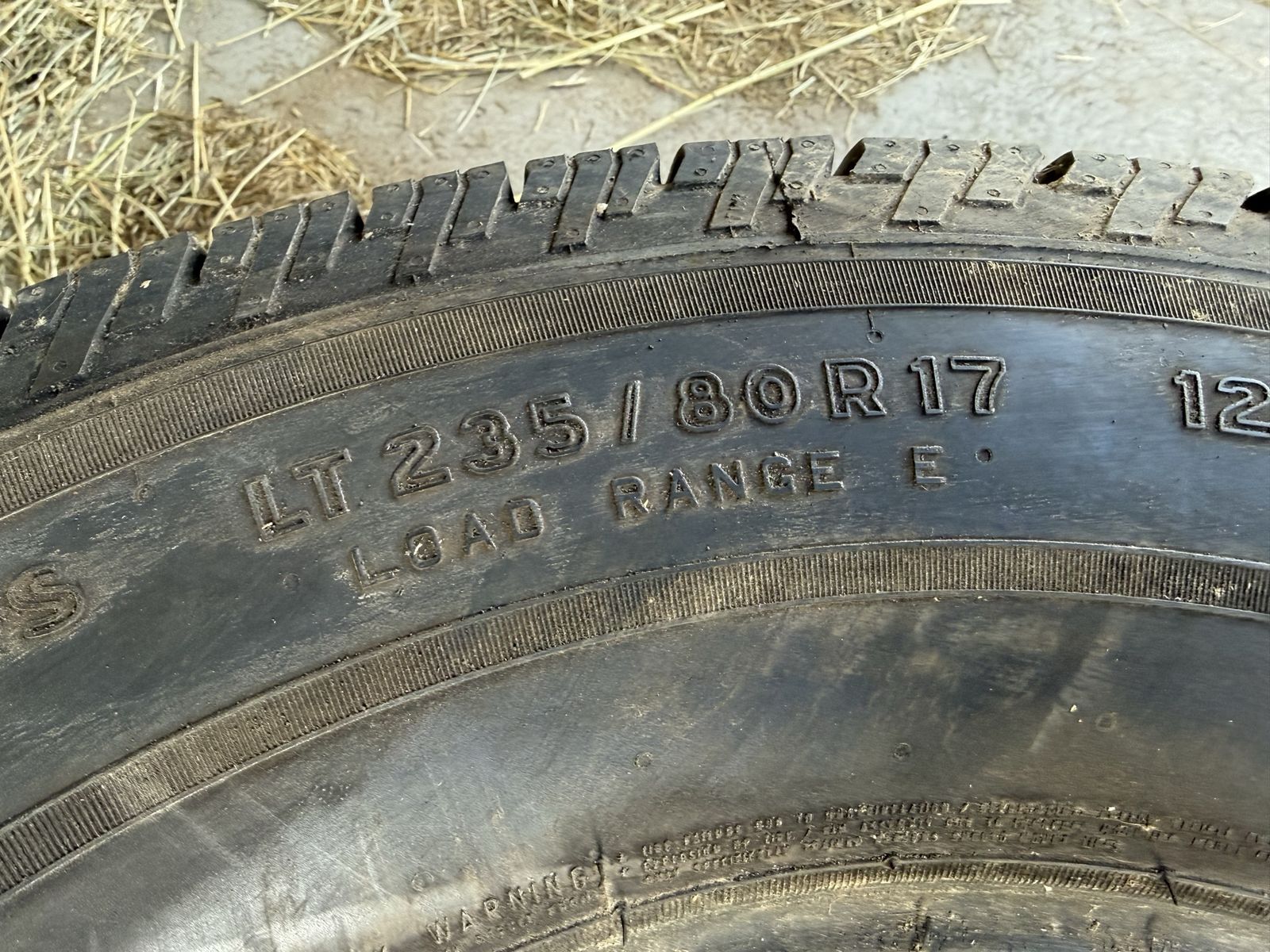 6 tires around 75 percent tread and one brand new one for a spare. Perfect setup for a dually. Price is obo