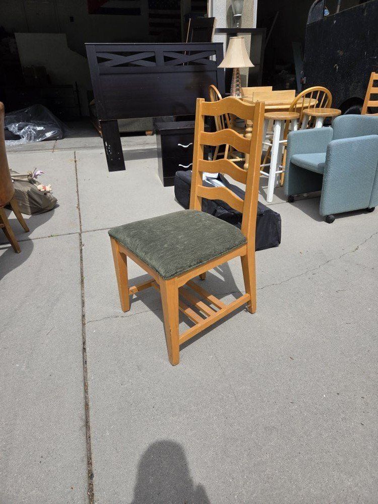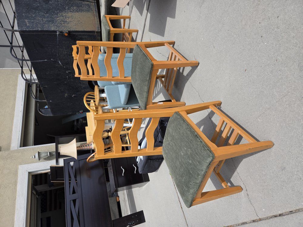 6 solid wood green cloth chairs