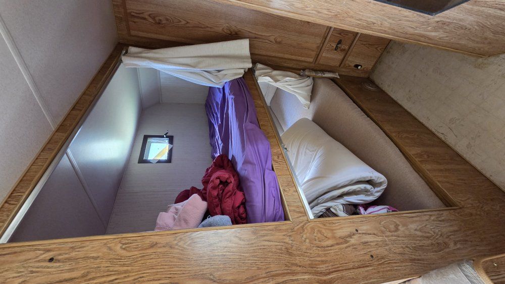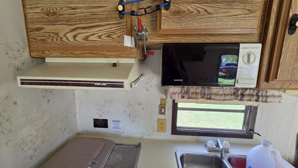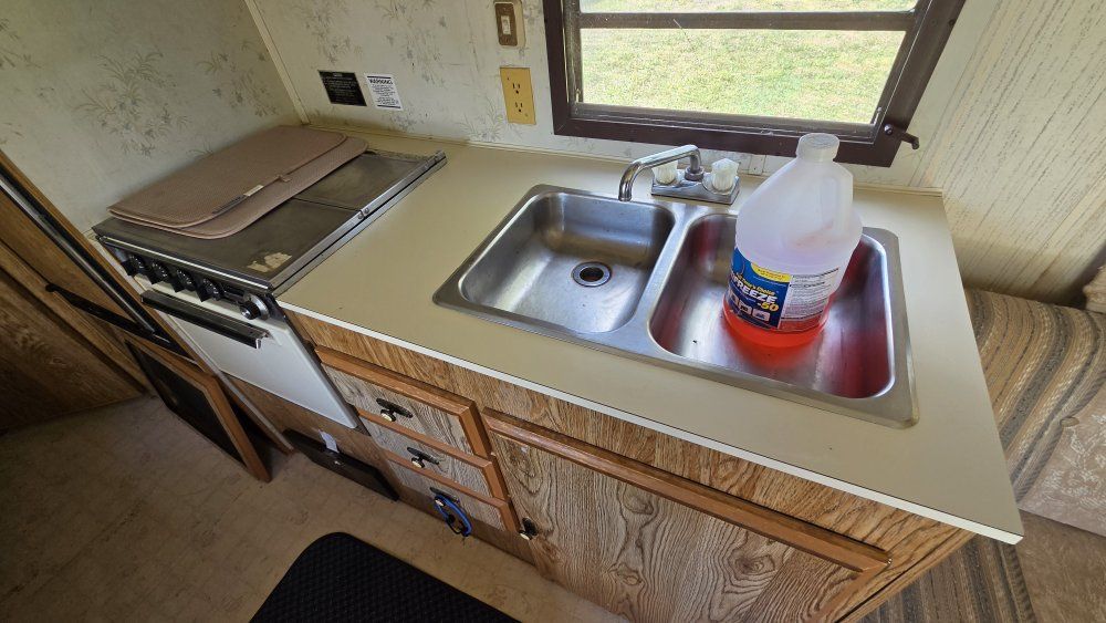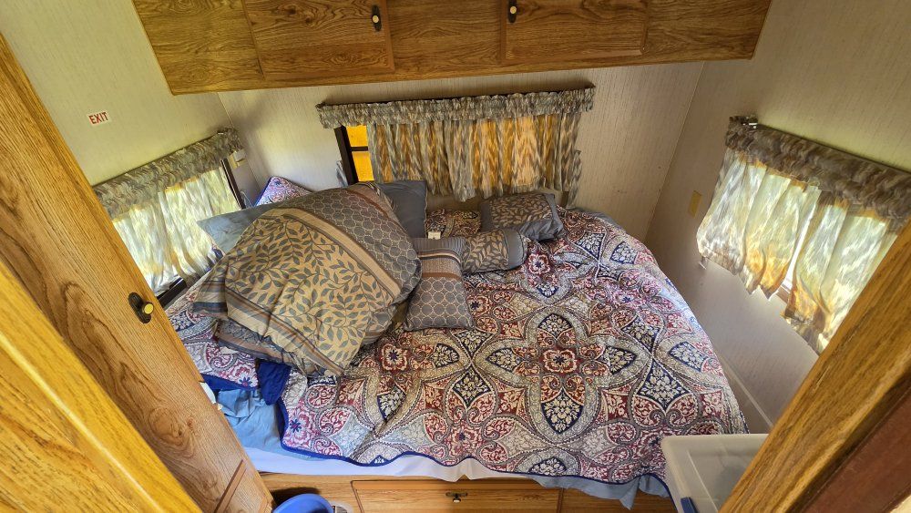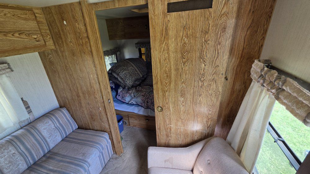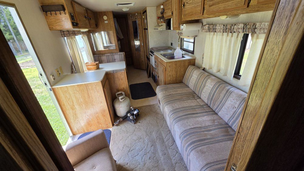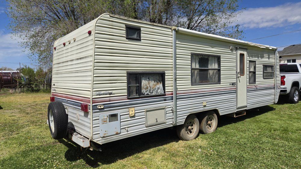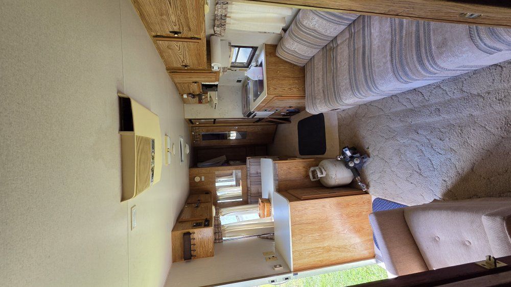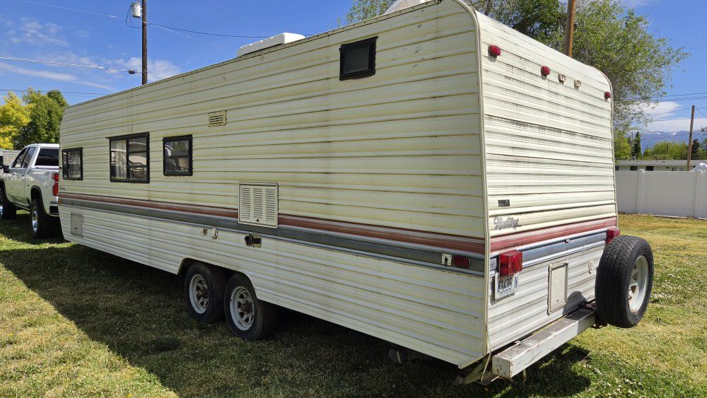 PayPal1990 Monterey Road Ranger 29' Bumper Pull Travel Trailer. Desirable bunkhouse floorplan. Sleeps 6-8 comfortably. Seperate Master Full size bed with closet and comfy mattress. Door closes for privacy. Couch and Dinette convert to beds. 3 burner stove. Oven Refrigerator/Freezer works great Microwave Air Conditioning Furnace 6 Gallon Water Heater 30 Gallon Fresh Water tank 30 Gallon Grey Water tank 30 Gallon Black water tank Spare tire 7 Gallon Propane tanks Includes all Dishes, Cookware, Utensils Toilet replaced a few years ago. Carpet and furniture upholstery in good condition. Lots of storage! Upgraded High velocity roof vent and fan! Power tongue jack is super strong and so nice to use. Winterized and stored. Has sat for a few years but still good condition. INCLUDES Equalizer Hitch Includes extra 5 Gallon propane tank Purchasing as-is.