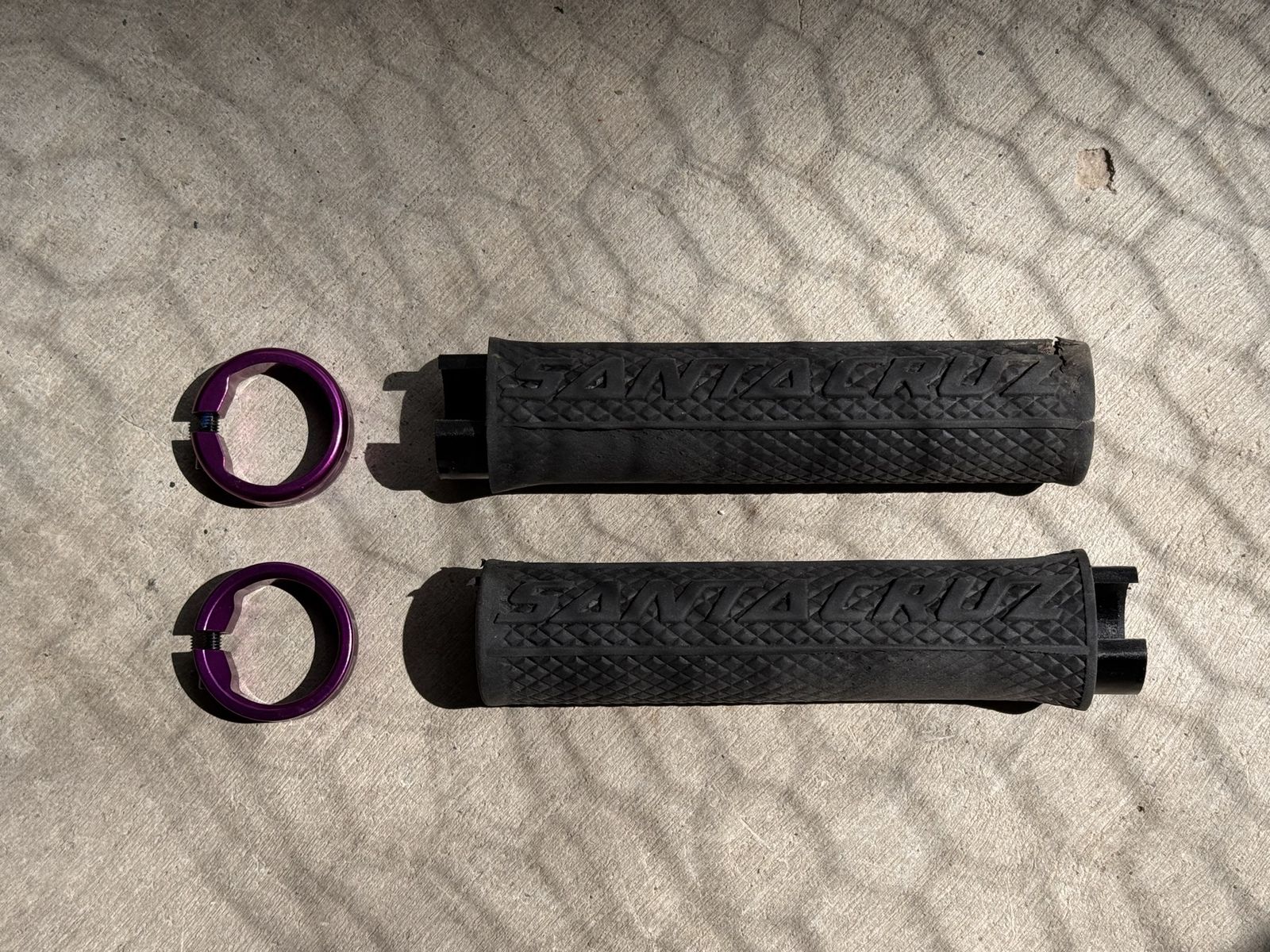 ApplePaySelling the purple Race Face Getta Grip 30mm lock clamps. This sale can also include the black worn out Santa Cruz grips and collars for free. Available in the South Salt Lake area.