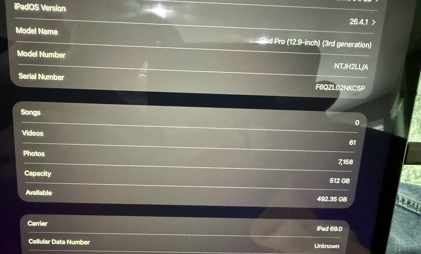 Apple iPad Pro 12.9-inch (3rd generation) A2014 512GB Unlocked Wi-Fi+Cellular, It’s in amazing condition and has had very little use. Only reason for selling is it never gets used. No damage, No issues, everything works. Call or text w questions