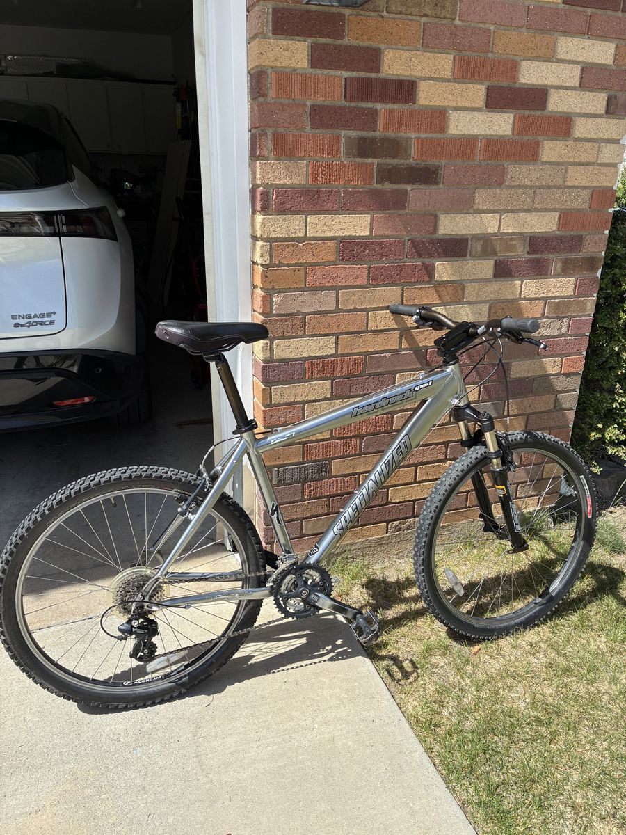 Specialized Hardrock Sport bike in a medium frame. This bike has been extremely reliable and durable. Has wear and tear from riding but everything still works well.