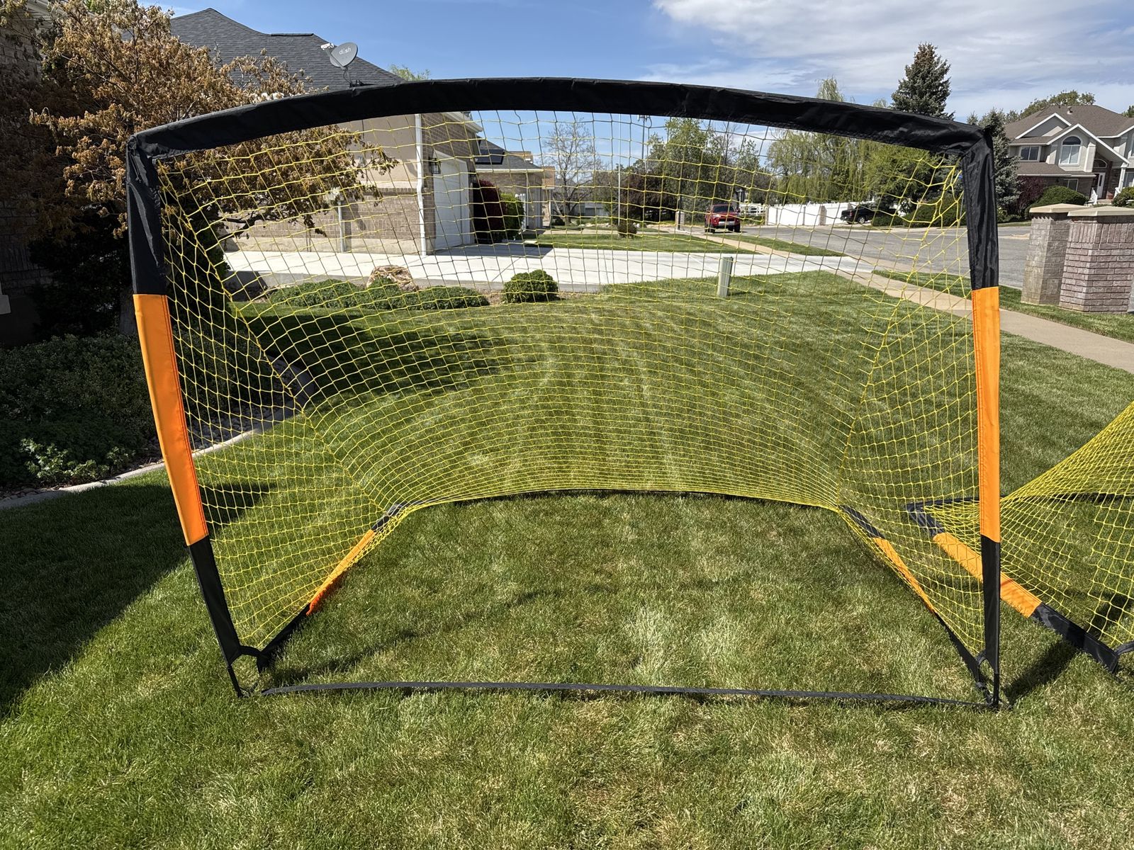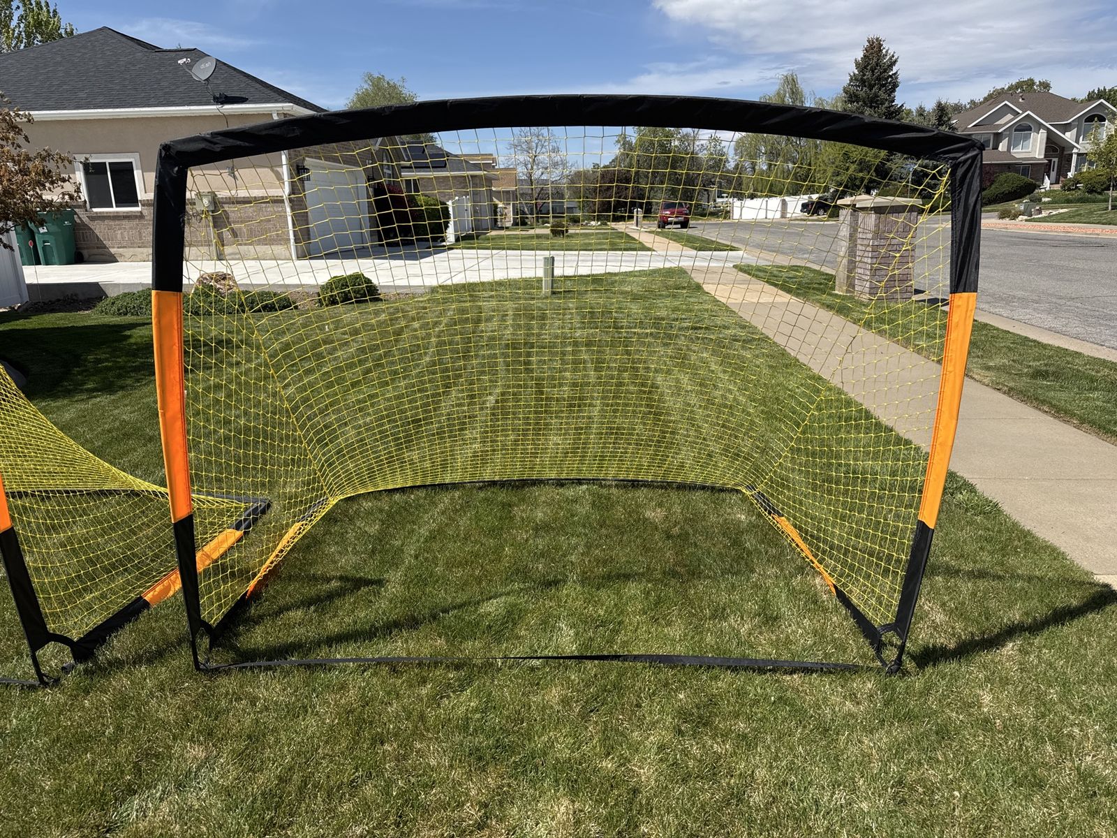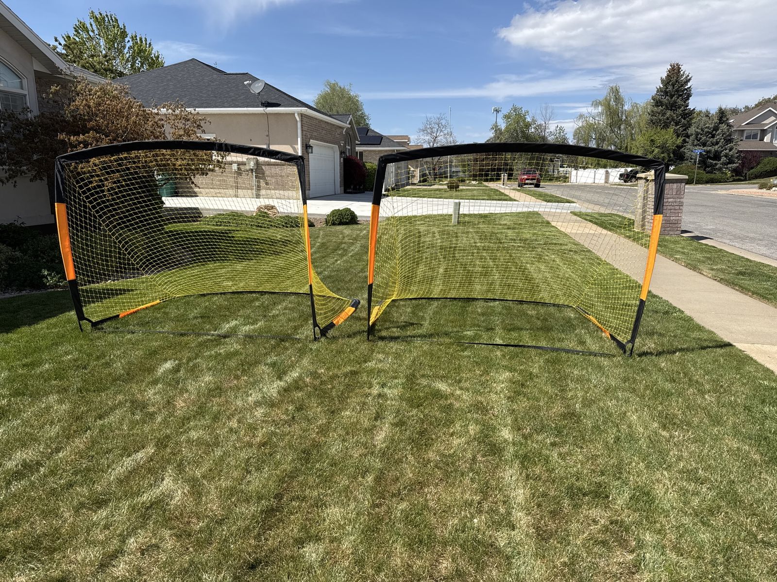 VenmoFoldable soccer nets. Easy to transport. Price is for both. They measure 7 feet wide and 5.4 feet high.