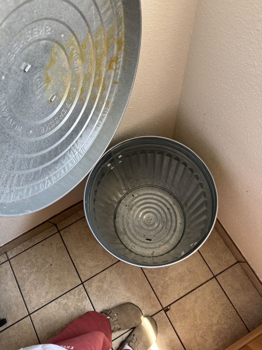 large metal trash can, as is. I dont remember exactly how many gallons but I think it's between 20-30 gallons! Pick up and cash only please!
