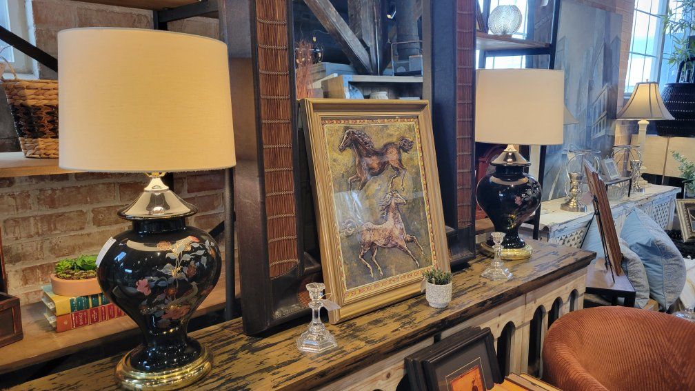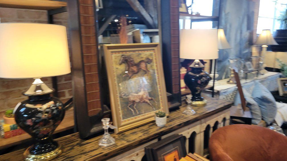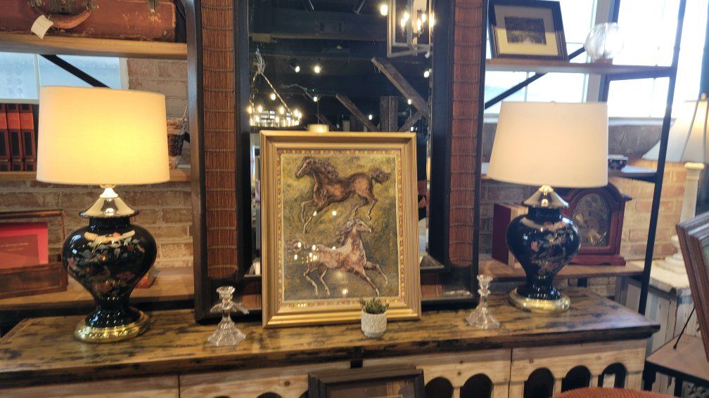 Beautiful set of vintage lamps in Excellent vintage condition. Dark blue.