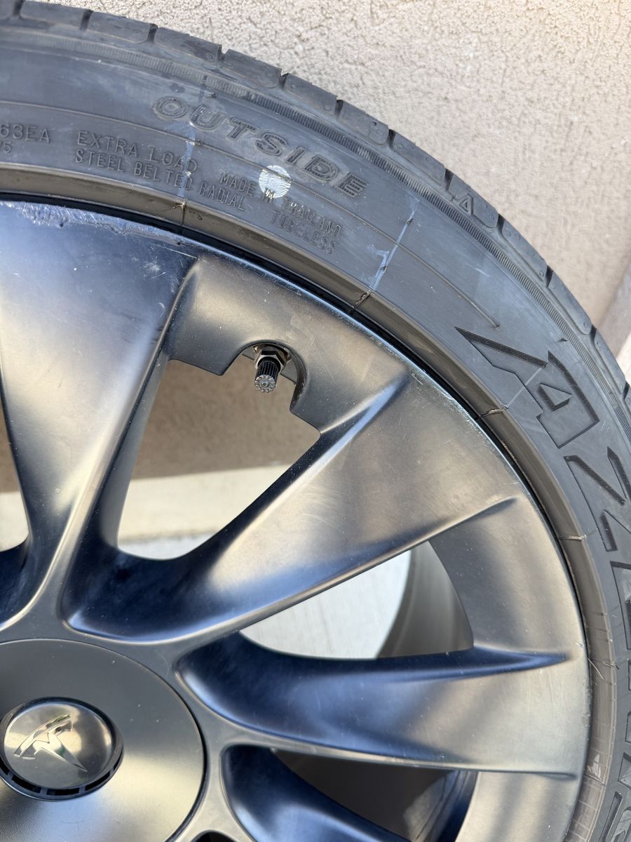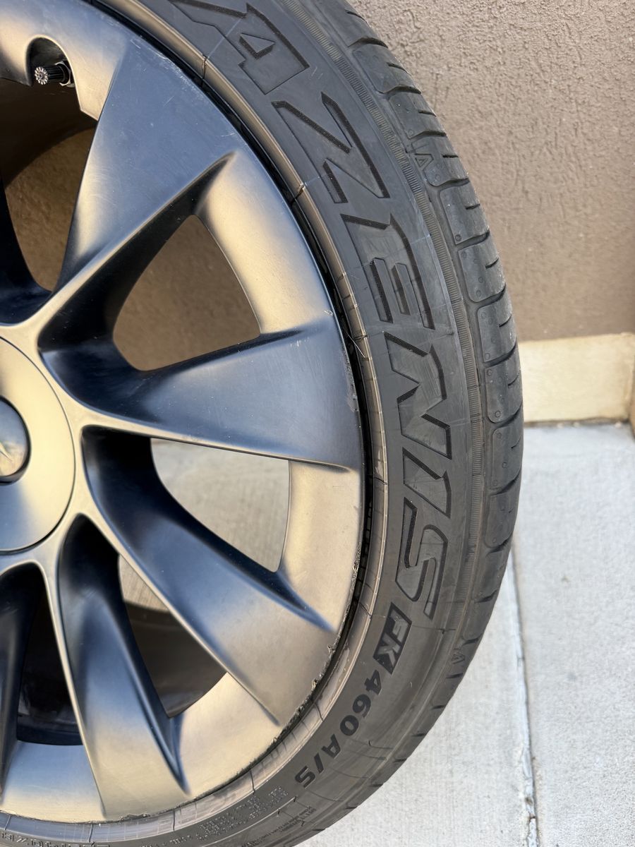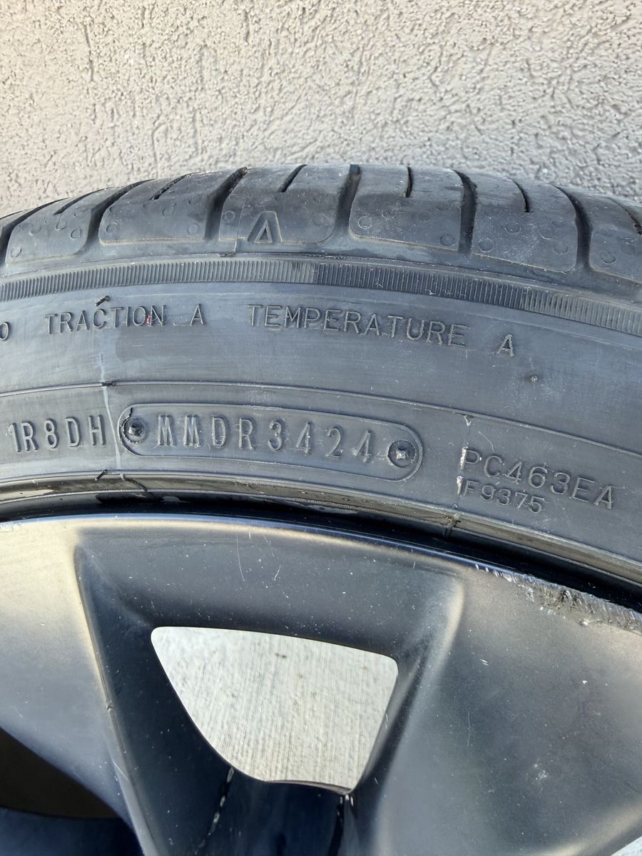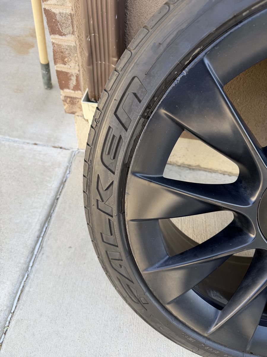VenmoFor sale is 1wheel/tire from a Tesla model Y this will fit all years of the Tesla model Y. This is the black upgraded induction 20 inch wheel. It is 20x9.5 the tire it has in it is 255/40r20 Falken Azenis FK 460 All season, with 6/32nds of tread left, which is around 60% tread remaining. Bluetooth TPMS sensor is installed and will sync up with your car instantlyX. Tire is balanced and ready to bolt onto your car. This would be a great replacement or to have as a spare.