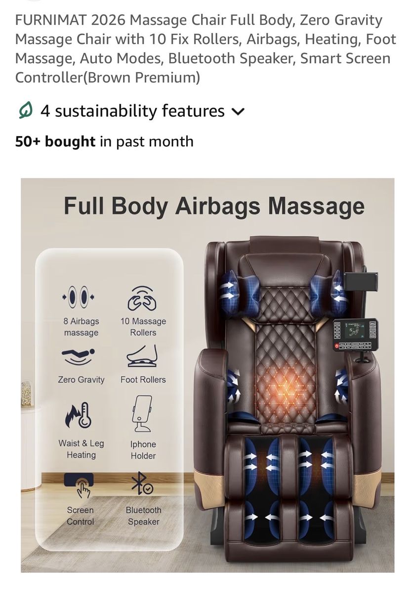 2026 FURNIMAT full body zero gravity massage chair. Used 10 times and now just sits with the cover on it.
