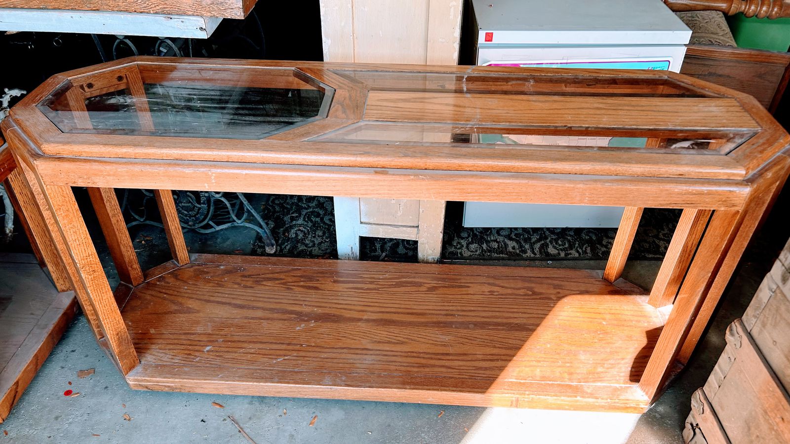 Tables and in good condtion with a few minor scuffs. Wood with Glass inserts. Been in storage so needs a good cleaning. FCFS No holds.