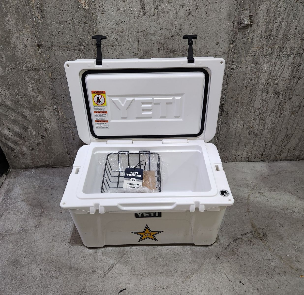 YETI Tundra 45 Hard Cooler White with Rockstar logo, used 1 time