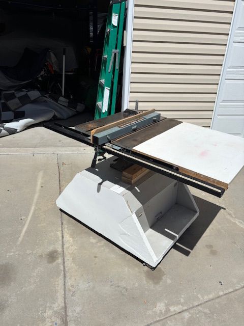 This was my brother old table saw that has been sitting at my parents house for years. Mom wants it gone. Brother does a lot of wood working and says this is better than anything you will get at home depot.