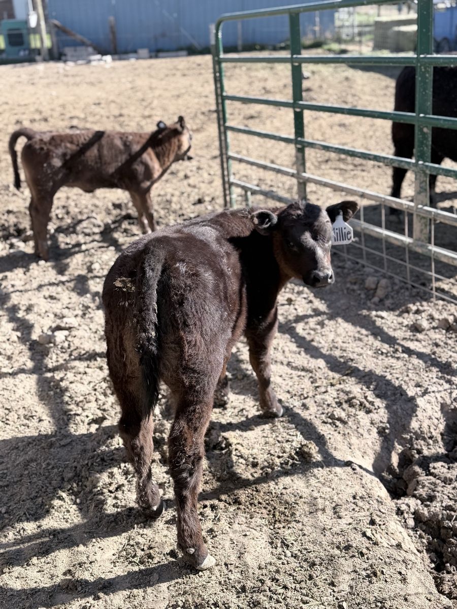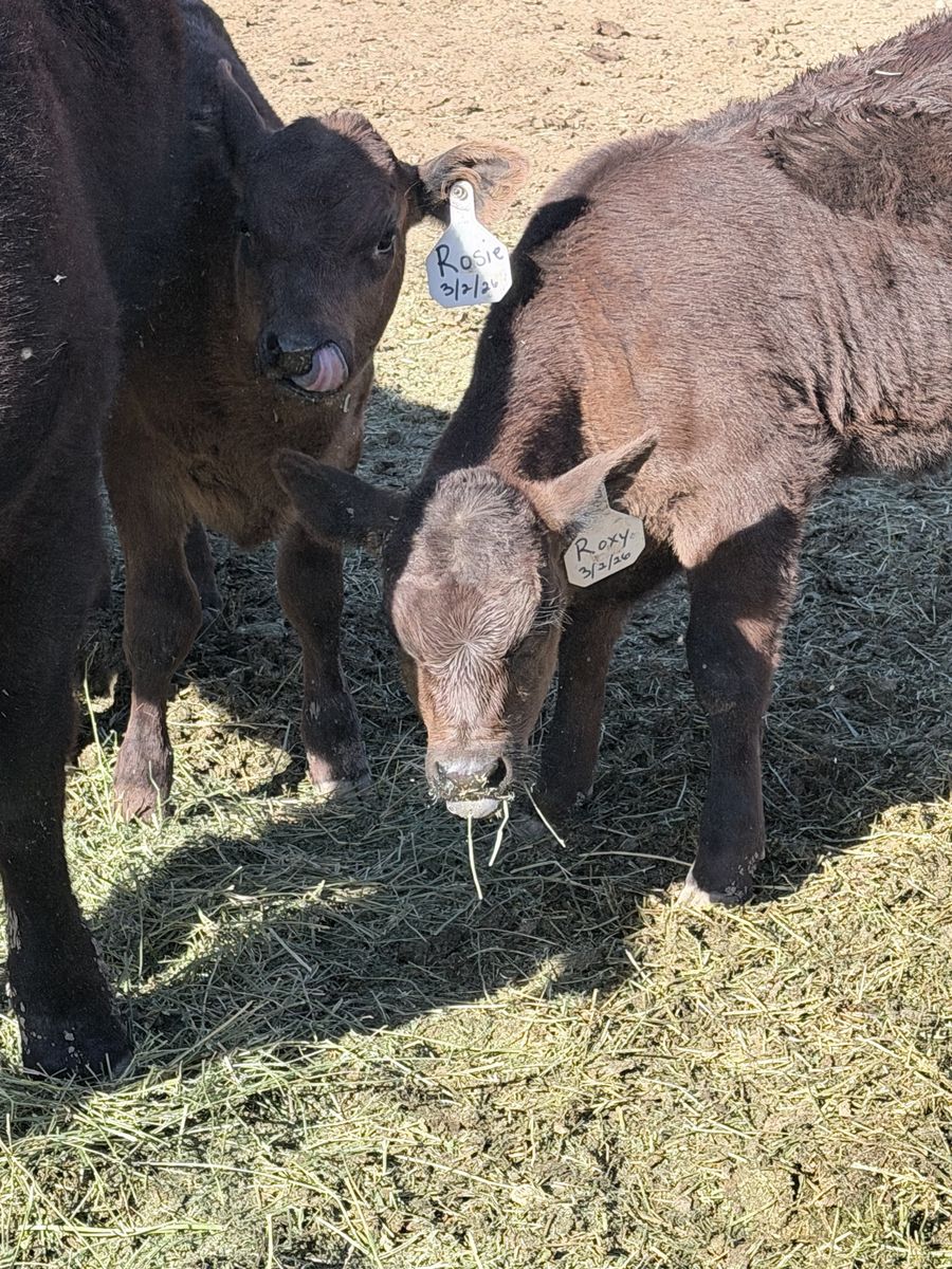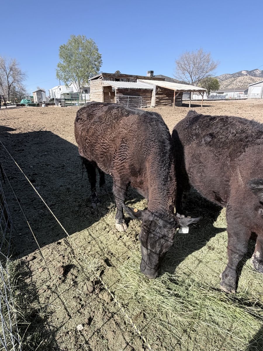 All calves are still nursing and already munching on hay. Everyone is healthy and vaccinated, friendly can feed out of your hand. Moms are black angus and the bull was a red angus.