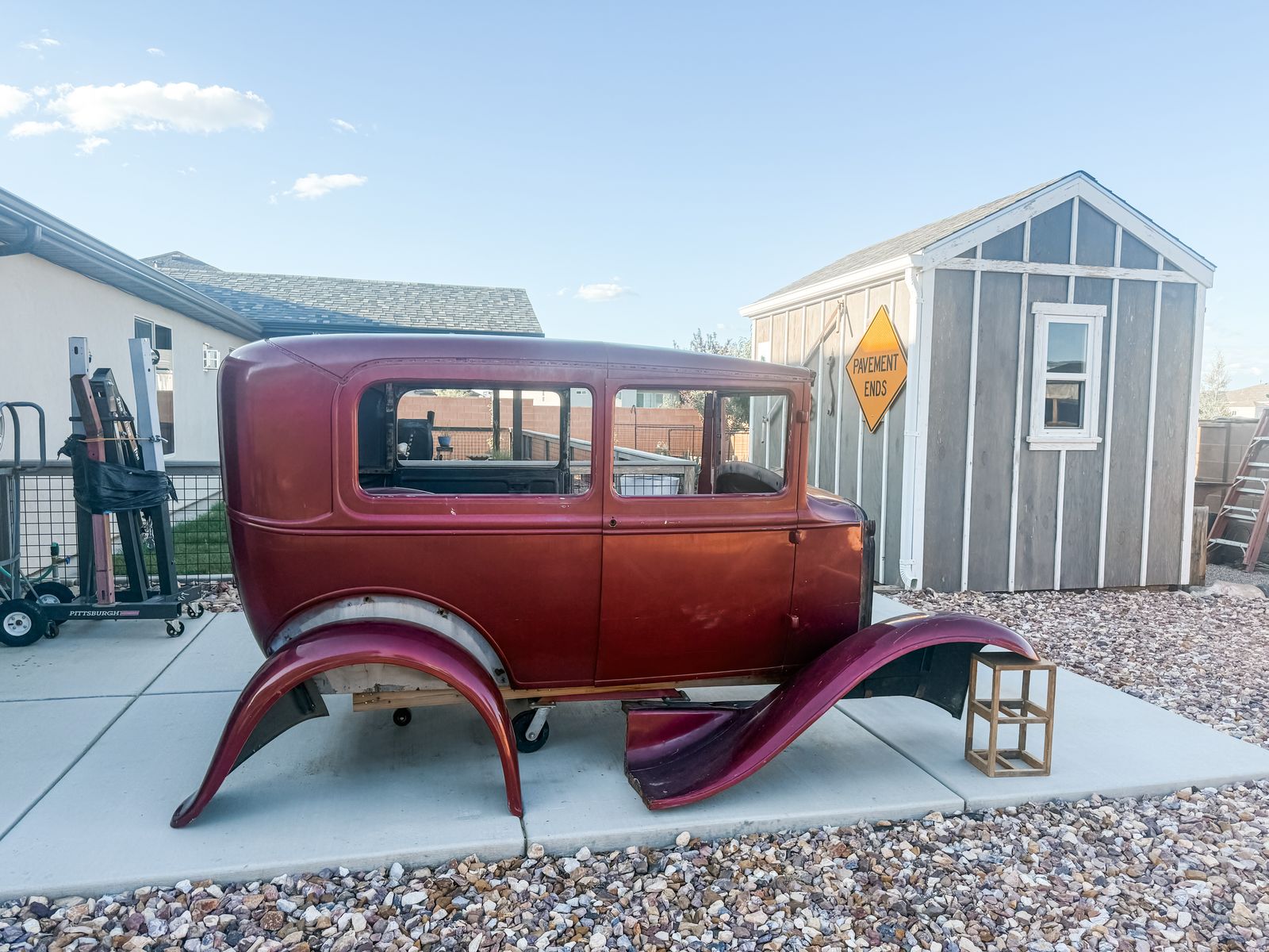 30 Model A Tudor sedan. All origial henry steel body fenders and sheet metal. Fully boxed, modified Z'd frame. Fat Man Fab front suspension with rack nand pinion steering. Speedway ladder bars. Narrowed Ford 9 in rear end with 3.25 gears and new drum brakes. . Brand new 325 HP 350 chevy with block hugger headersl and newly rebuilt .Turbo 350 transmition. Would consider trade for VW Bug or bus of equal value.
