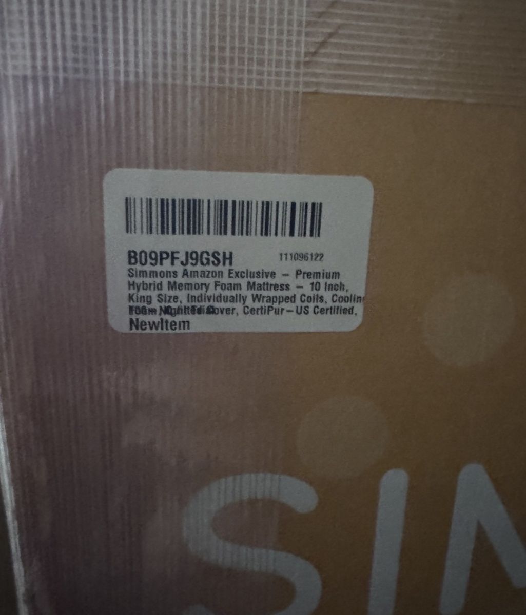 VenmoBrand new still in the box - Simmons 10” hybrid memory foam king mattress