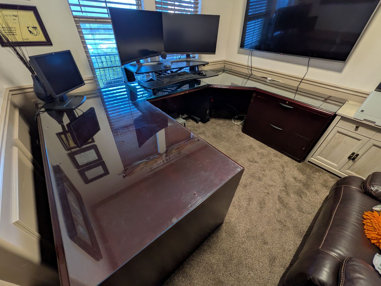 This desk offers tons of workspace and storage, making it ideal for multi-monitor setups or anyone needing a large, functional desk.