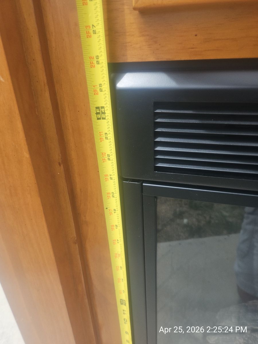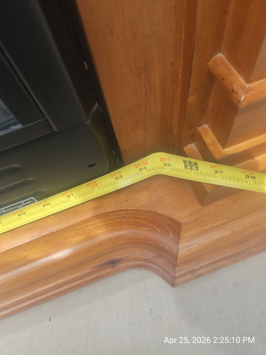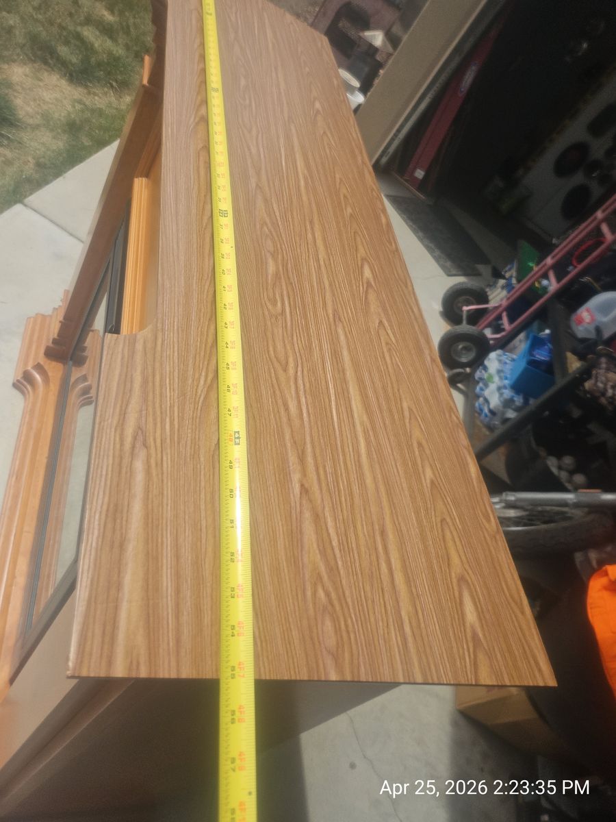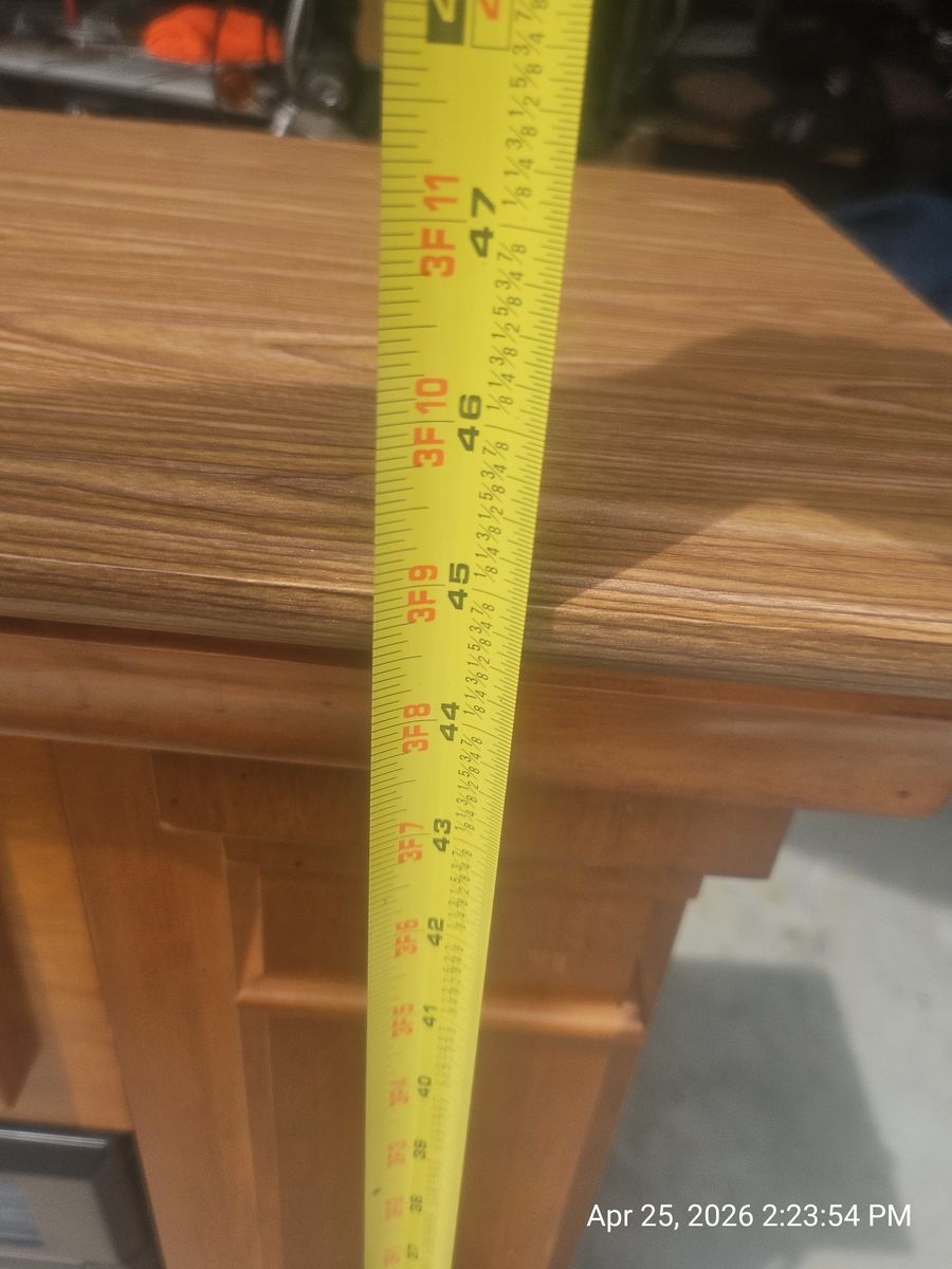 The top piece of wood (mantel) is scuffed up and bit dented from a big screen TV. It can be refinished if wanted. In lieu of refinishing the wood I put a sheet of contact paper over the top to cover it as a temporary aesthetic fix.... looks good
