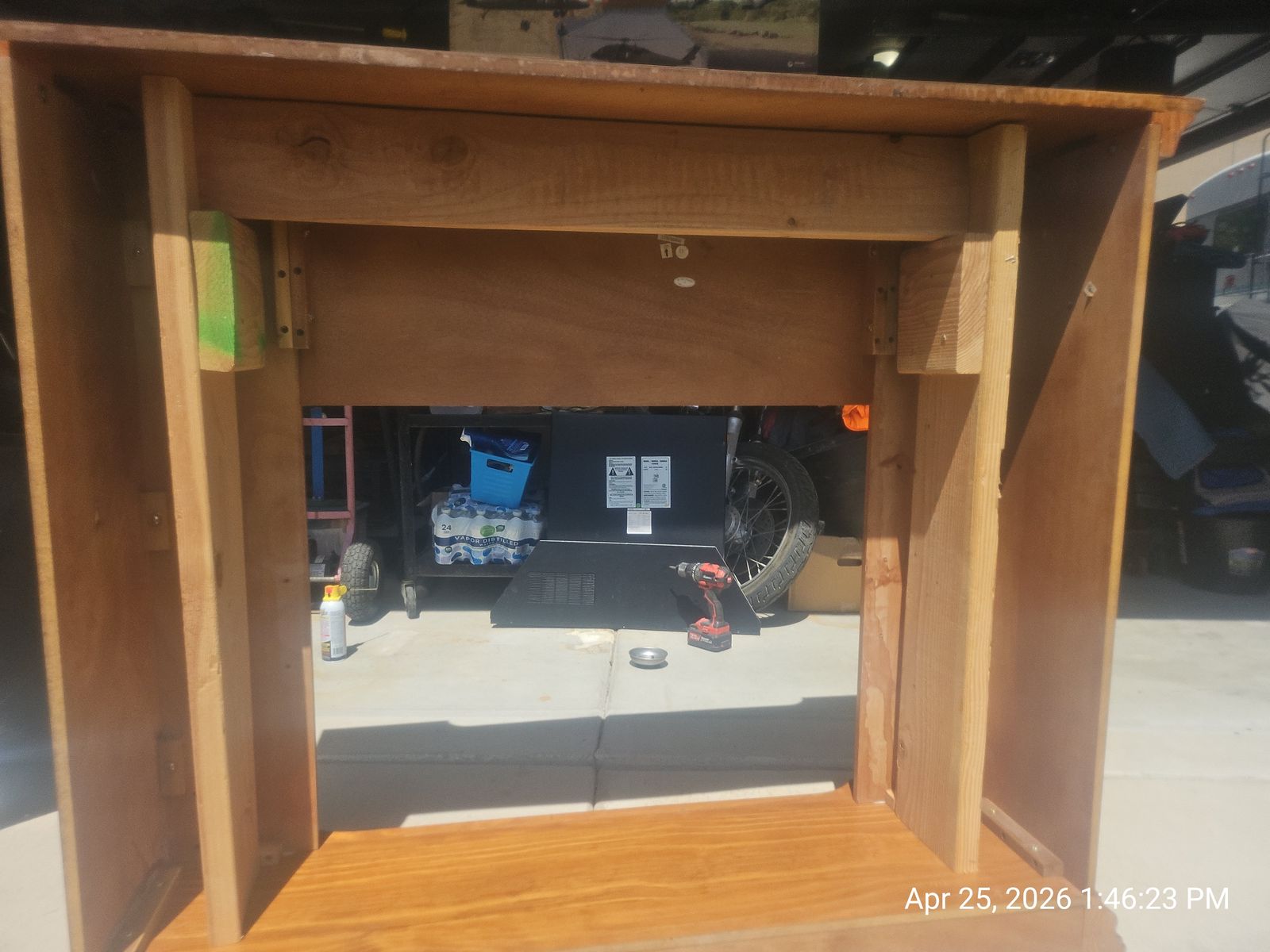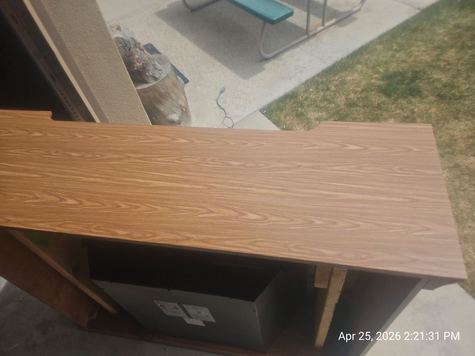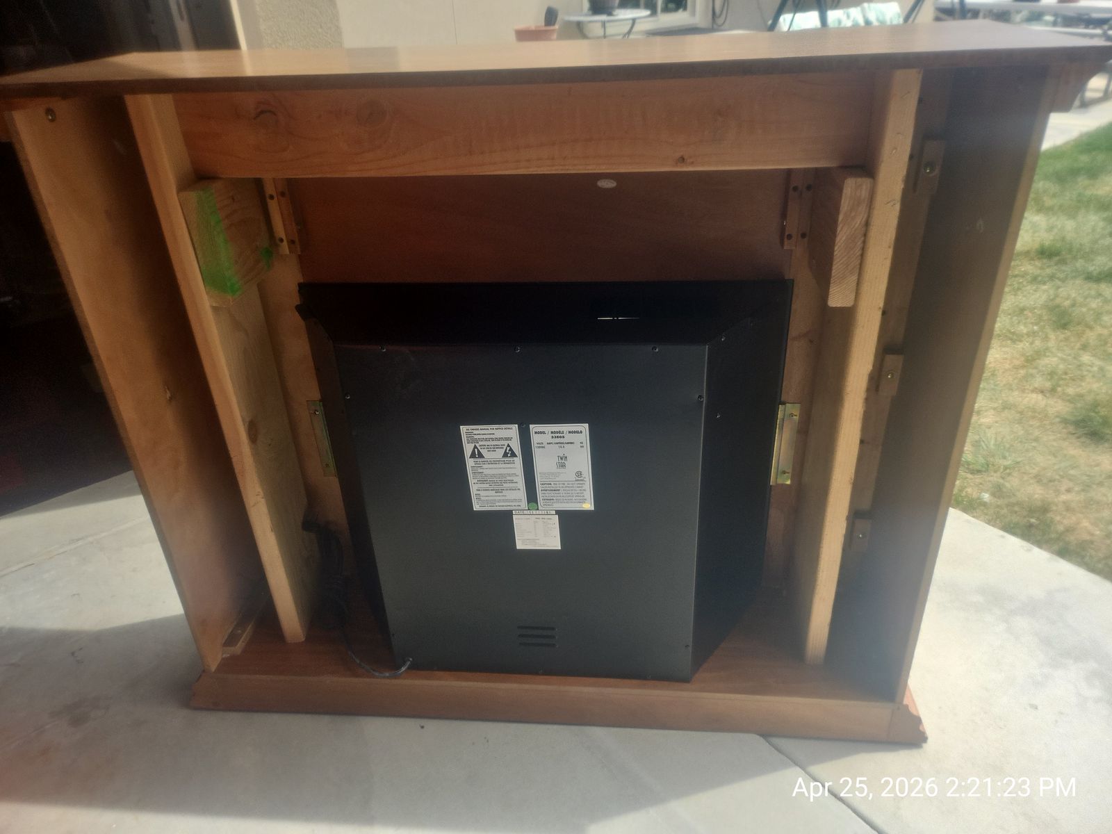 Has a custom made wooden brace mounted inside of the cabinet under the top mantle to give more support for heavier items placed on the top if so desired.