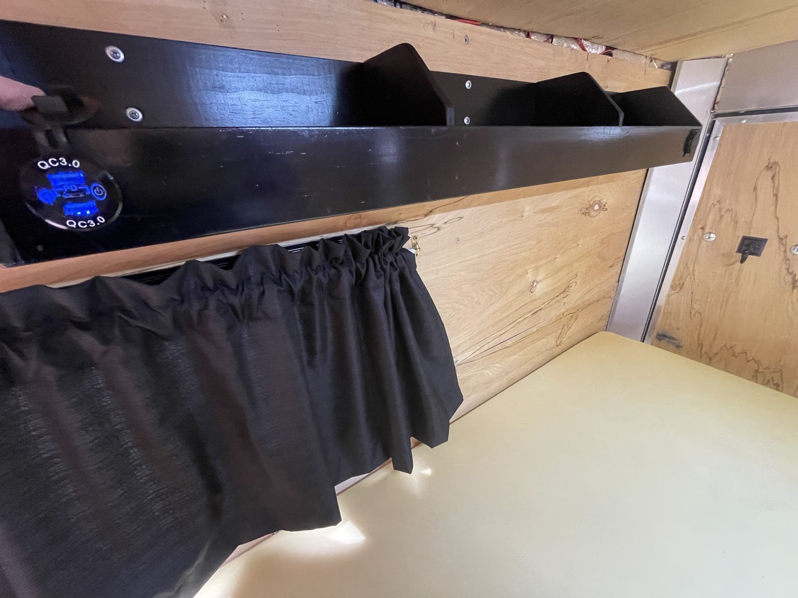 -(2) 12V USB/USB-C plugs above the bed with some storage