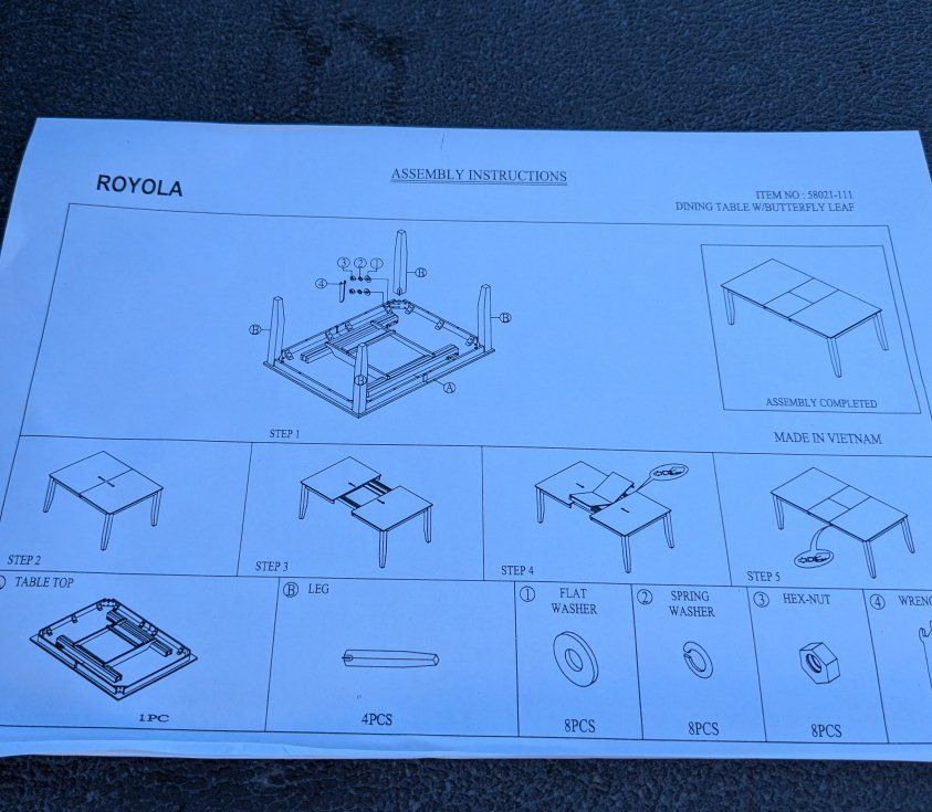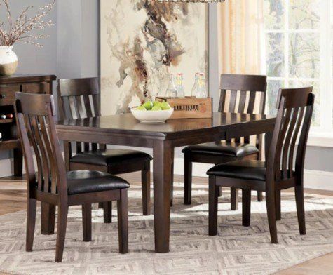 This heavy duty, beautiful dining room table is brand new! 5 feet long without extension, about 6.5 feet long with butterfly extension.