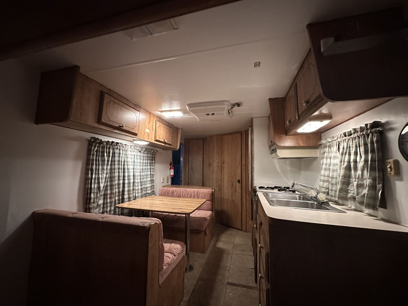 tbe peel and stick flooring is not the best but this camper is good to go camping