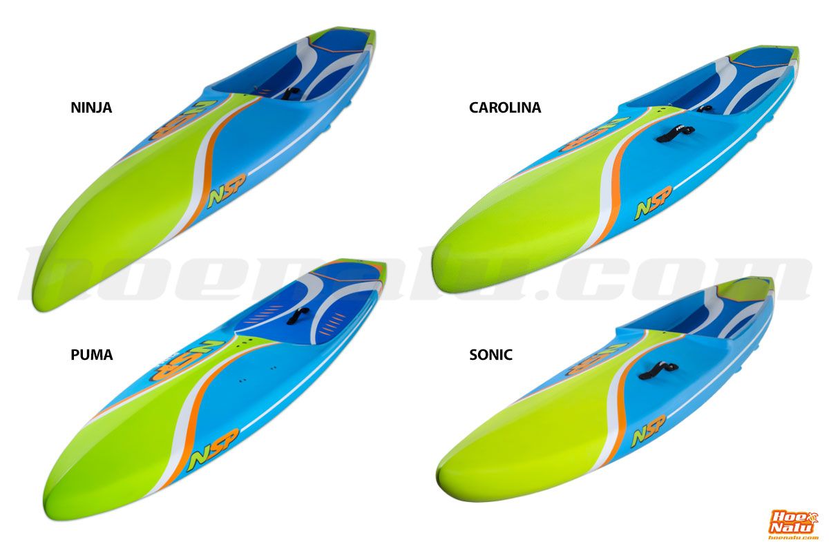 "NSP’s Ninja provides paddlers with the option for a very fast, flat-water board, but one that can work in textured water conditions as well. Recessed deck with the lowest possible center of gravity and reduced width without compromising stability. All Ninja’s have enough nose volume to be able to paddle in a pack and ride the wash comfortably without having the board tracking right or left. Stable tail, ideal for flat-water races with buoy turns."