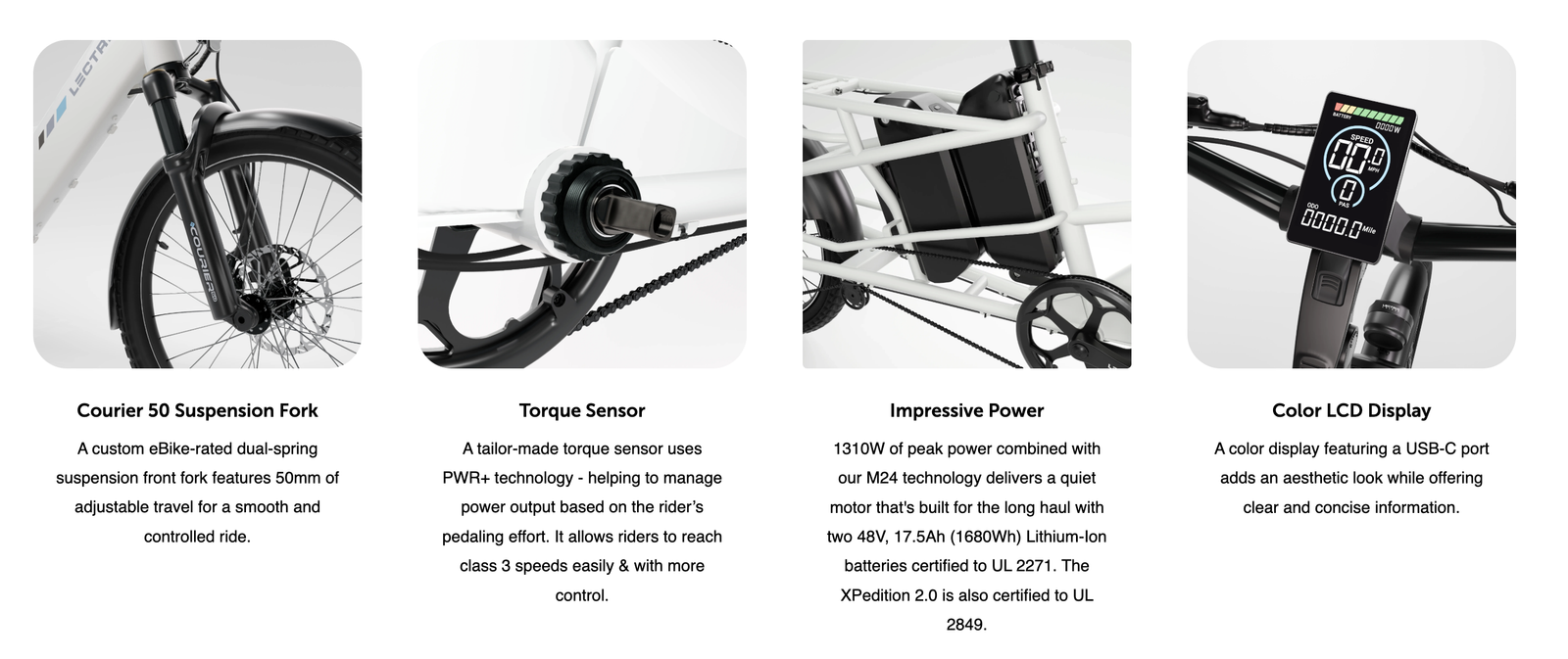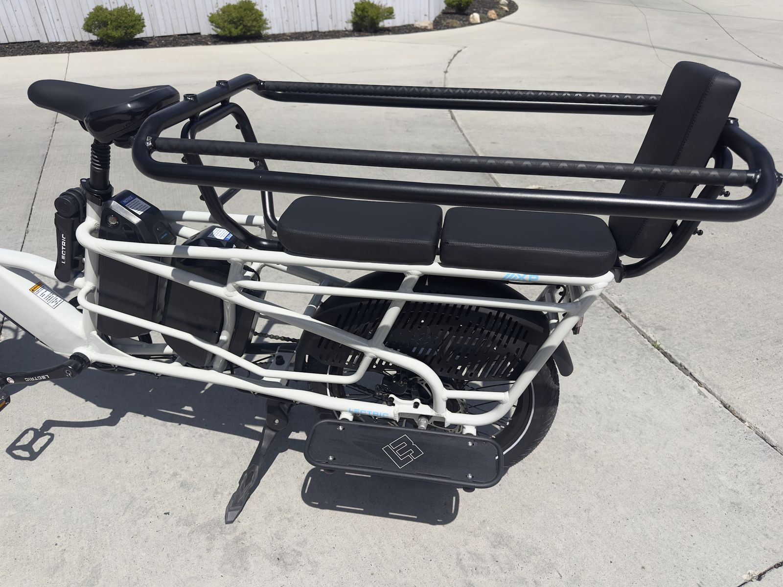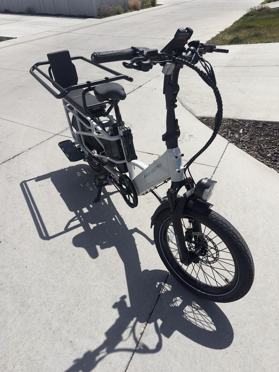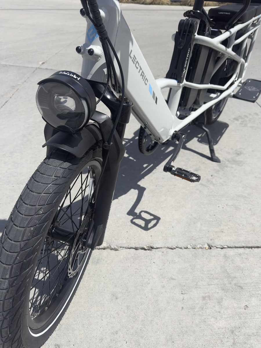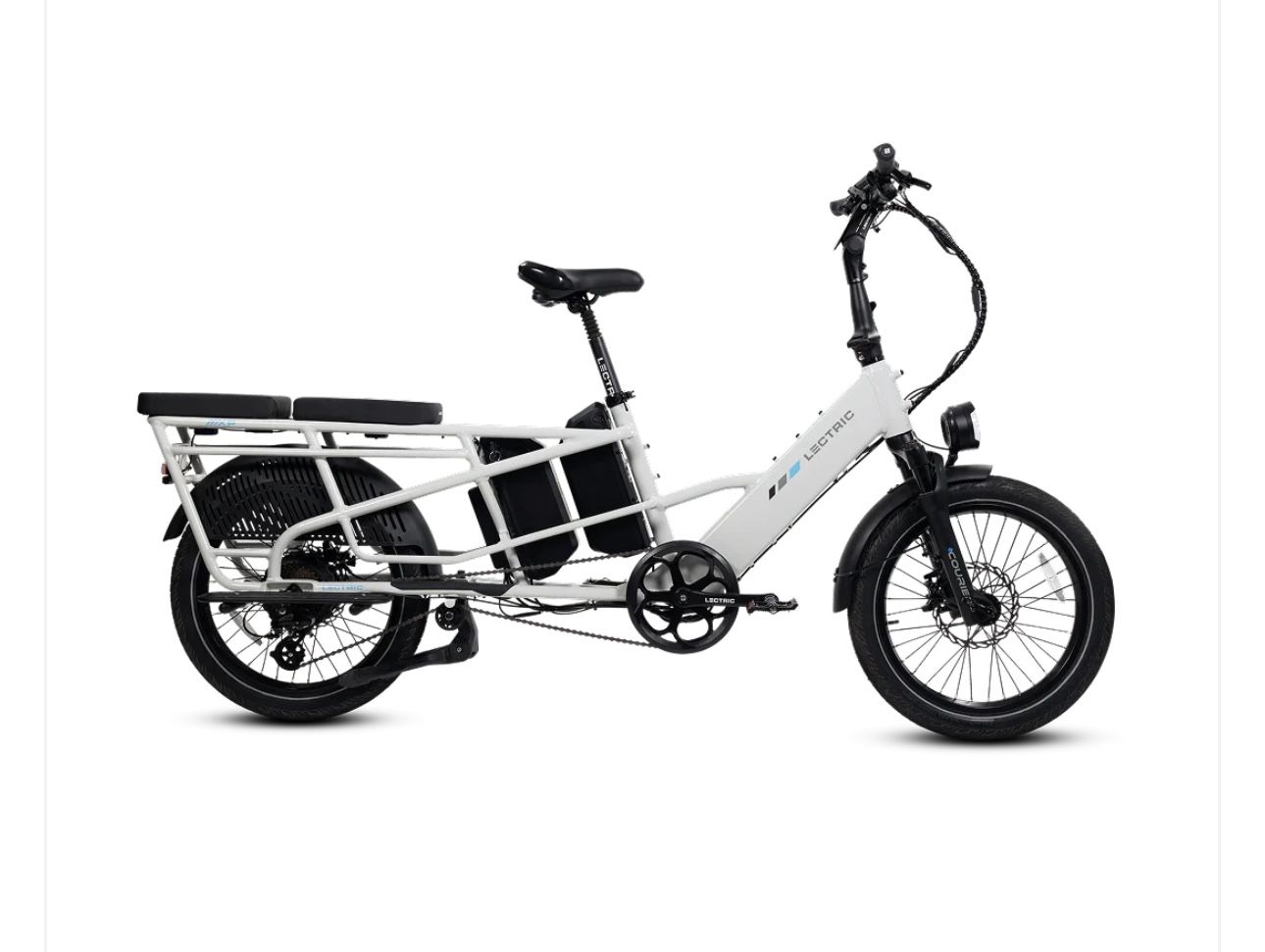 Lots of included accessories: - phone mount - eBike bell - (2) Mirrors - LECTRIC metal bike lock w/ keys - Running Boards - Elite Headlight - Suspension Seat Post - Orbitor rear basket to corral kids/cargo - (2) XL Cargo Bags - Fast charger - (2) Rear rack cushions
