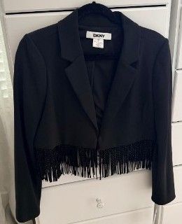 ApplePayBrand new DKNY black blazer with fringe detail.