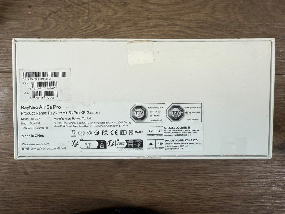 PayPalVR - VIDEO GLASSES: RAYNEO MODEL AIR 3 S, SERIAL NUMBER 3LPA03BQ3MI00SA