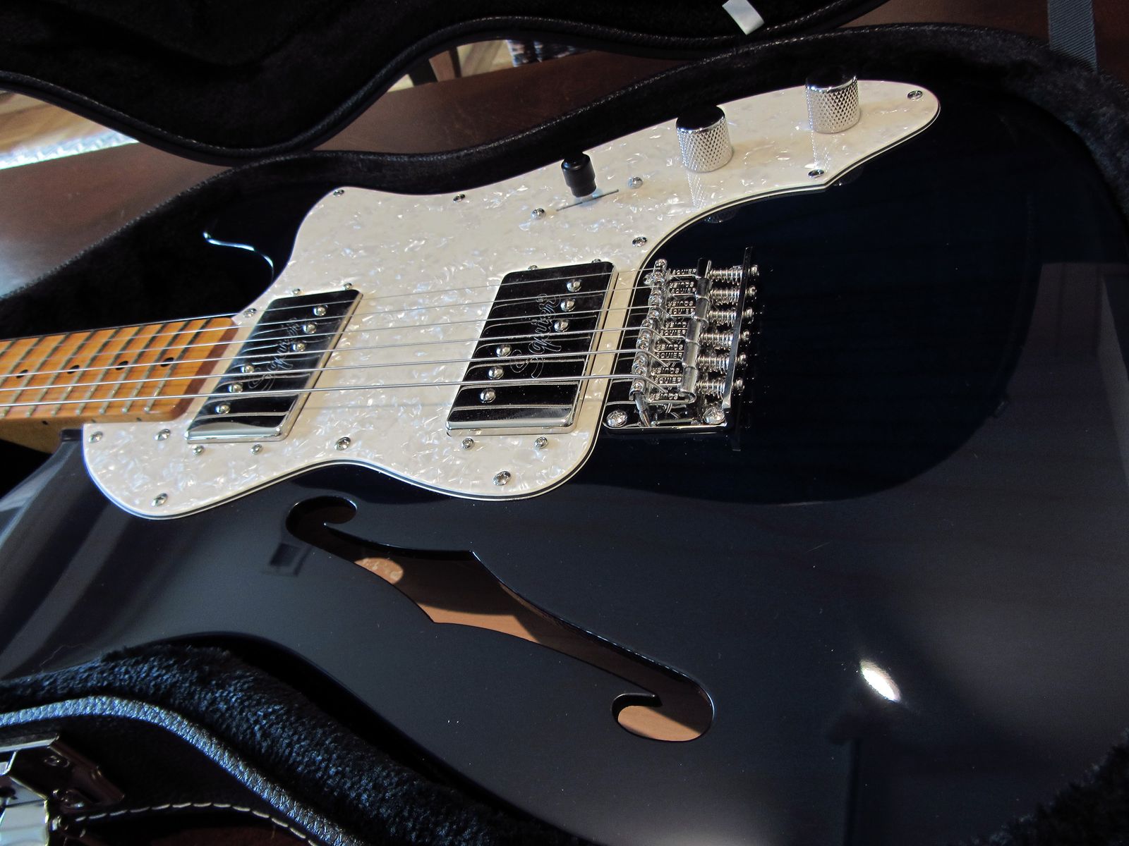 Squier Thinline with Wide-range humbucking pickups. The sapphire blue color was only available in the Canadian market or in the US through Sweetwater. Toasted maple neck plays well and the pickups sound great. Includes aftermarket hardshell case. Seldom played. Only signs of wear are a few surface marks. $425 cash only. Price is firm. Pick up in Ogden. (See here for specs: https://www.sweetwater.com/store/detail/TeleCV70TMSB--squier-classic-vibe-70s-telecaster-thinline-sapphire-blue-sweetwater-exclusive)