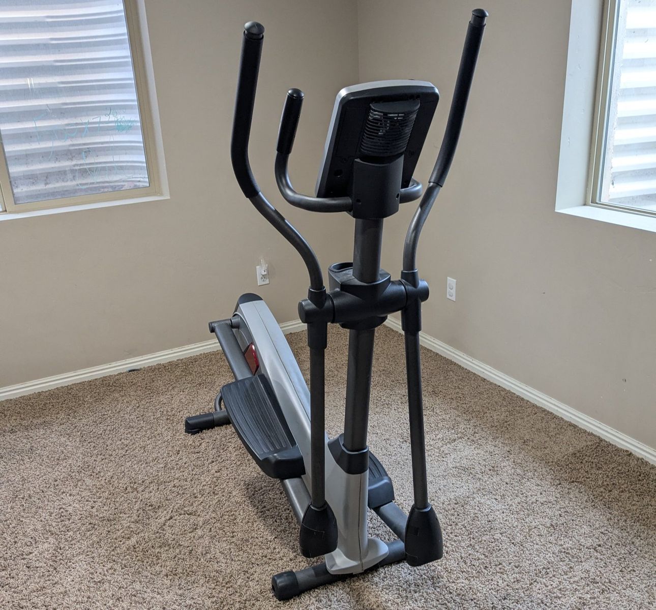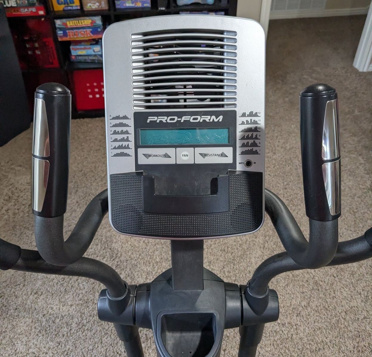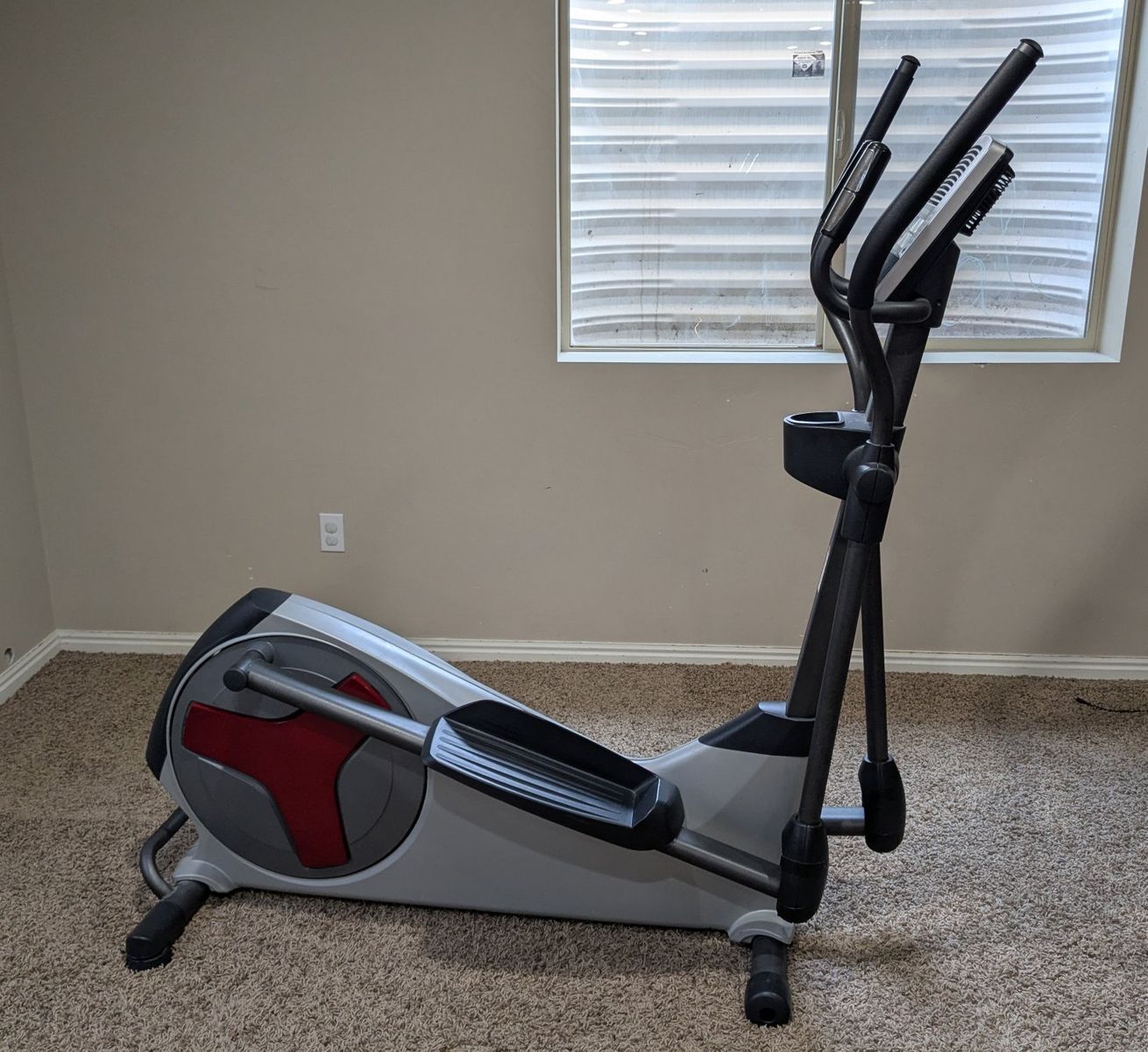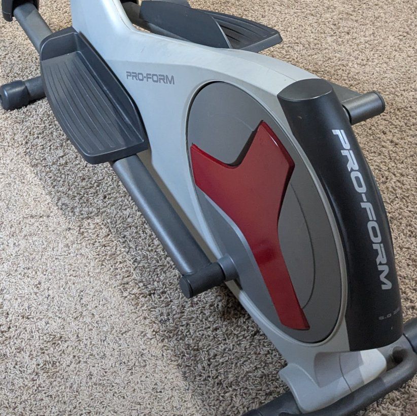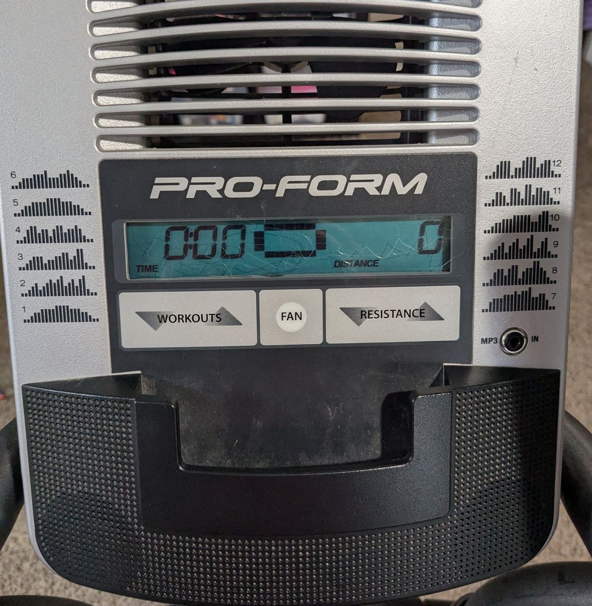There are a few signs of use. It has a scratched up console screen, but it doesn't impact seeing the digital numbers. It also has a few scratches and the cosmetic plastic covers on the bottom had to be taped back on (as shown in the last picture). It's a little creaky and could use a little grease.