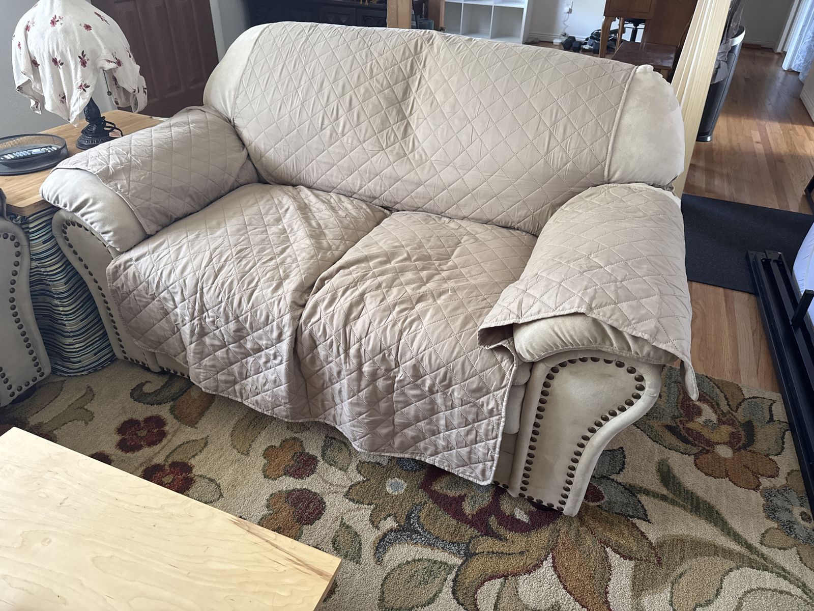 VenmoThey are cloth and very comfy. Shorter to accommodate a smaller space. I bought them used and they were very clean when I bought them. I have dogs and have had these covers on them the entire time I’ve had them. Covers are included if you want them.