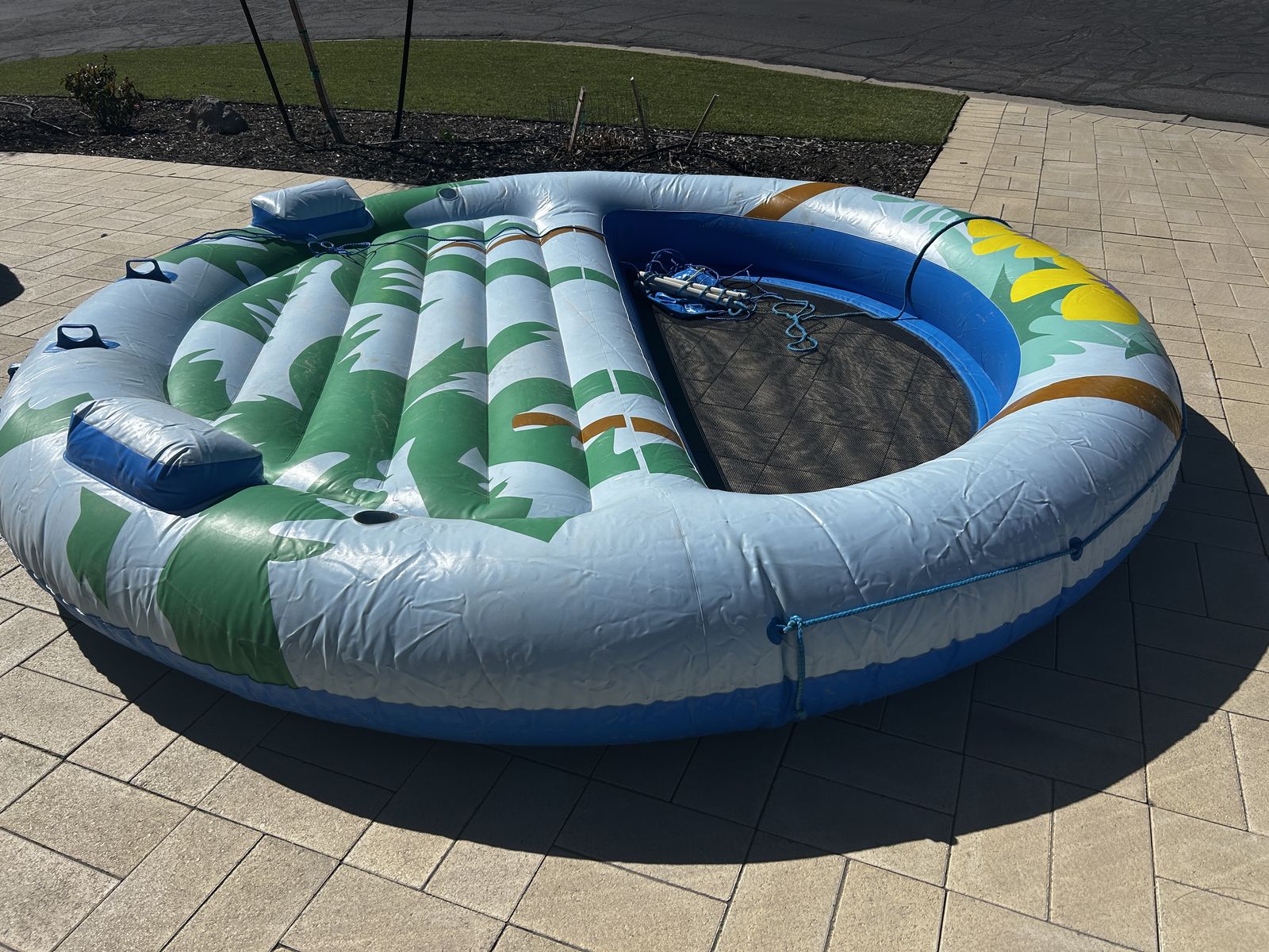 VenmoRound Inflatable 10' Island for Adults, Heavy Duty Pool Lounger with Pump, for Lake, Ocean & Pool