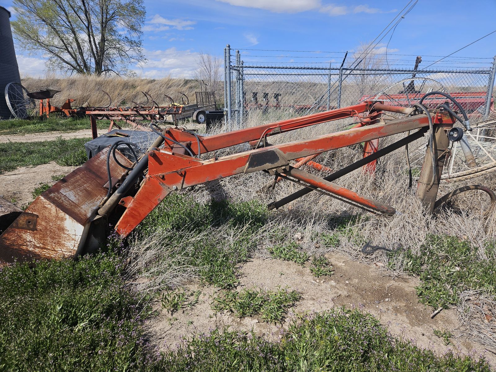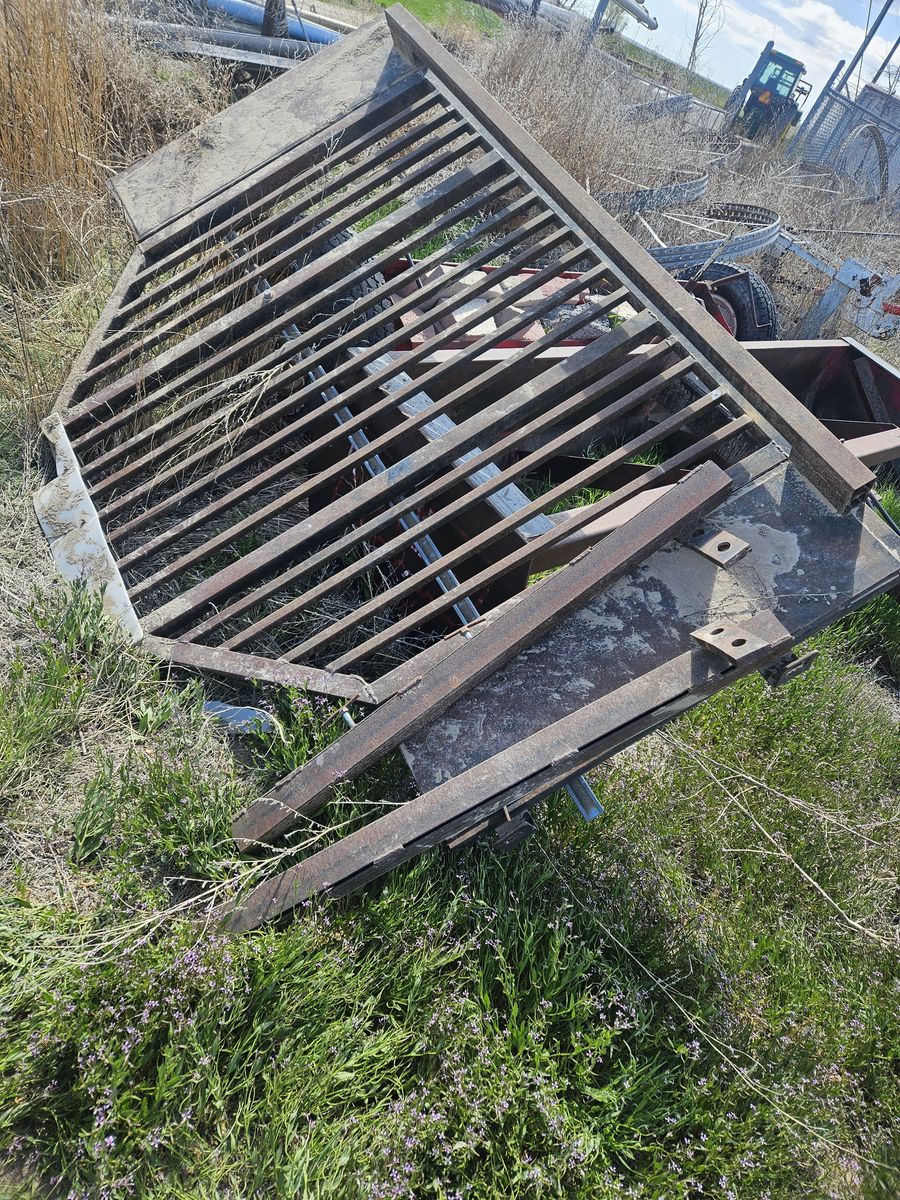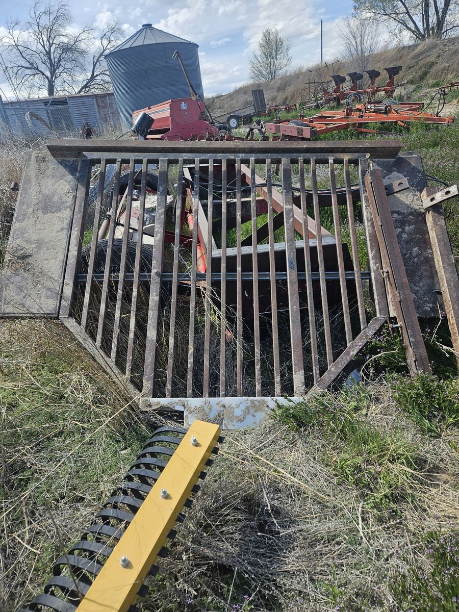 Older loader off a 544 Farmall, 6 row liliston cultivtor, Thunderbird mover, endgate for a semi trailer was probably used in a beet trailer