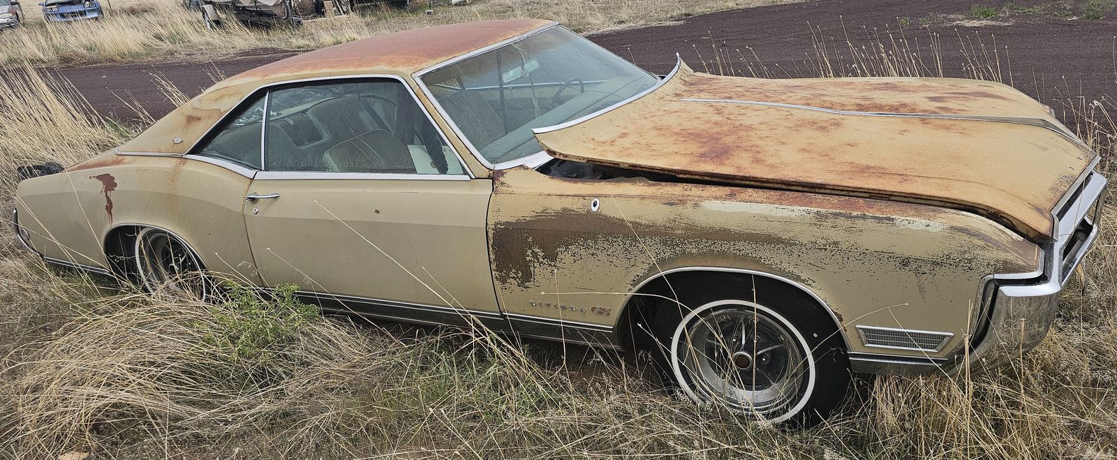 Hard to find '68 Gran Sport with buckets and console and full power options. Was a very nice dry running car until the hood flew up on the transporter a few years back. Oregon title.