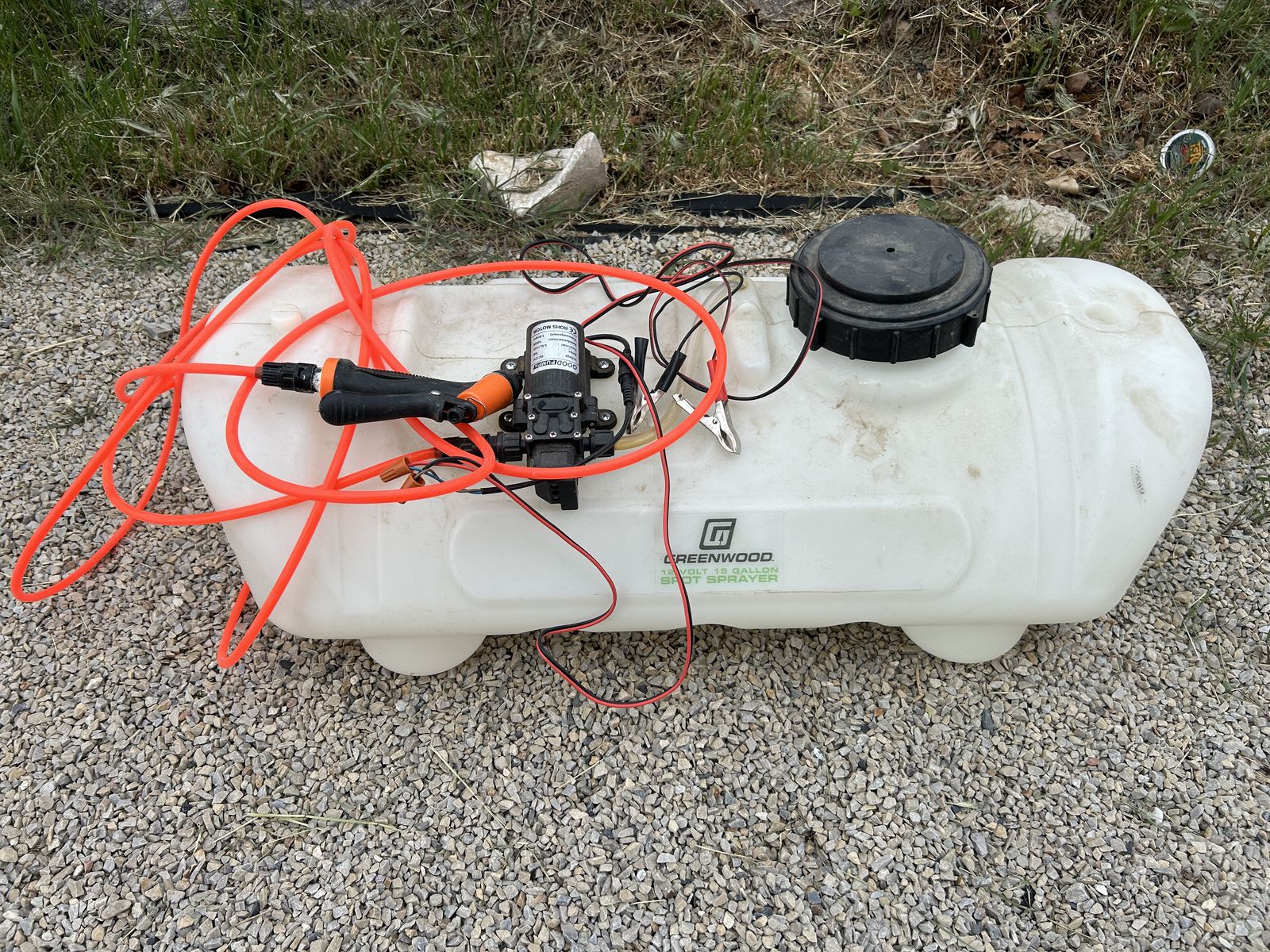 VenmoGreen Wood 12 volt, 15 gallon spot spray tank.