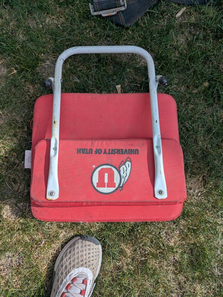 University of Utah Stadium Seat / Folding Cushion Chair – $20 Portable padded stadium seat with back support featuring University of Utah logo. Great for games, camping, outdoor events, or extra seating. Shows some normal wear from use but still works great.