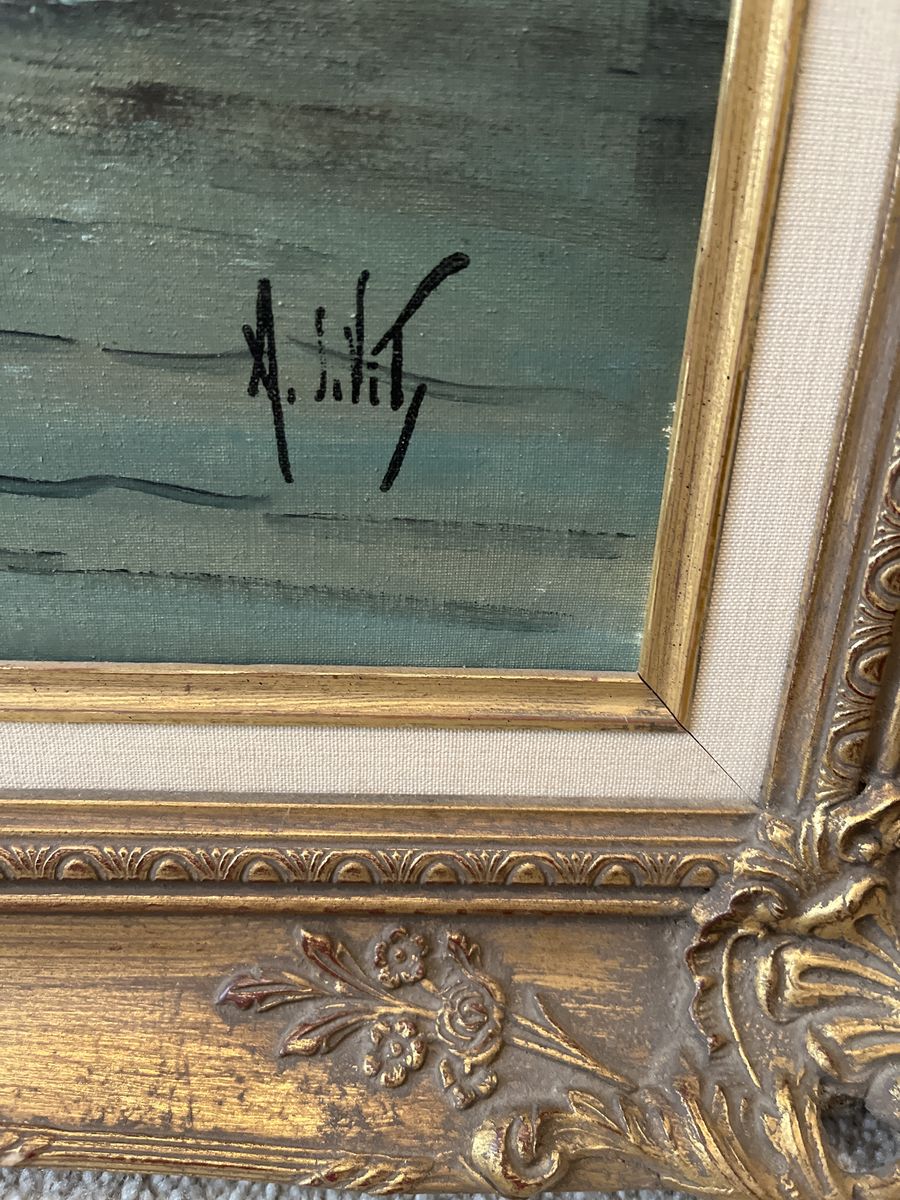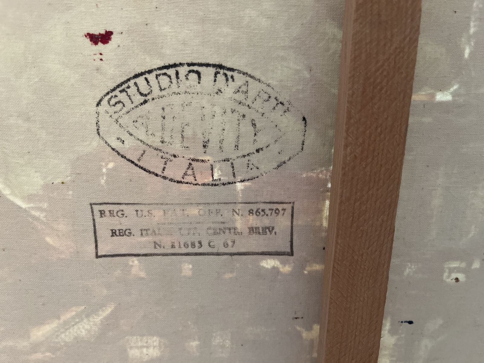 This piece was created by a mid-century Italian art studio (marked Studio d’Arte, Italy) and comes in an ornate gold frame made in Belgium, giving it a timeless, high-end look.