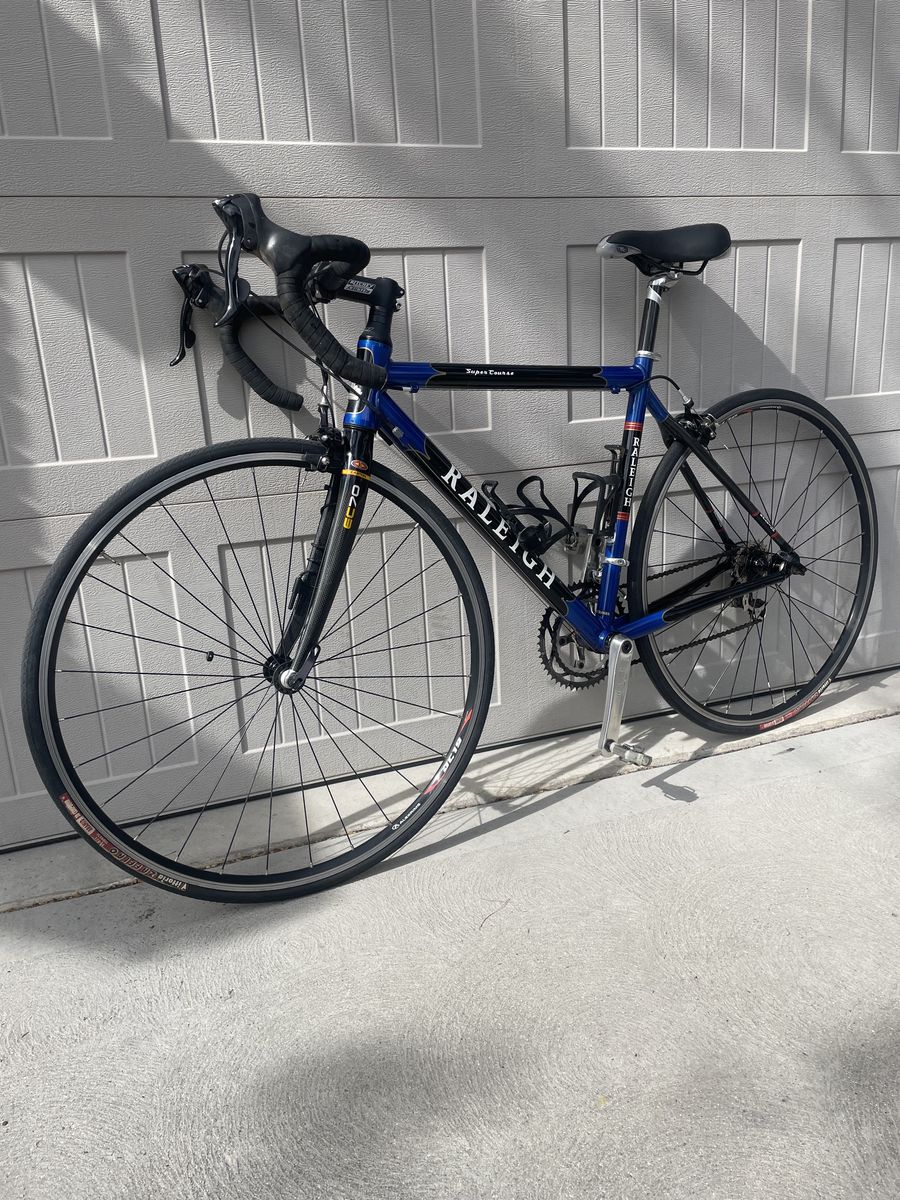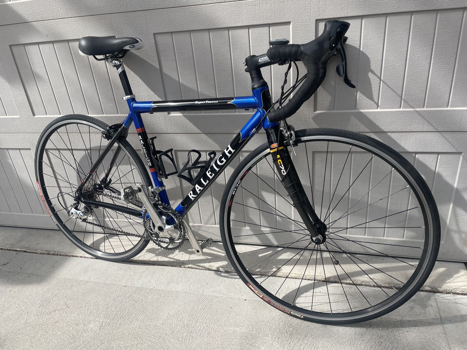VenmoGently used Raleigh Super Course road bike. It features an Atomic 13 R aluminum frame. The fork is an Easton EC70 carbon model. It is equipped with Shimano 105 components. Equipped with a comfort saddle. Mileage tracker but needs battery. It has two water bottle holders and holder for pump. It has a Shimano Ultegra rear derailleur and is size 50cm.