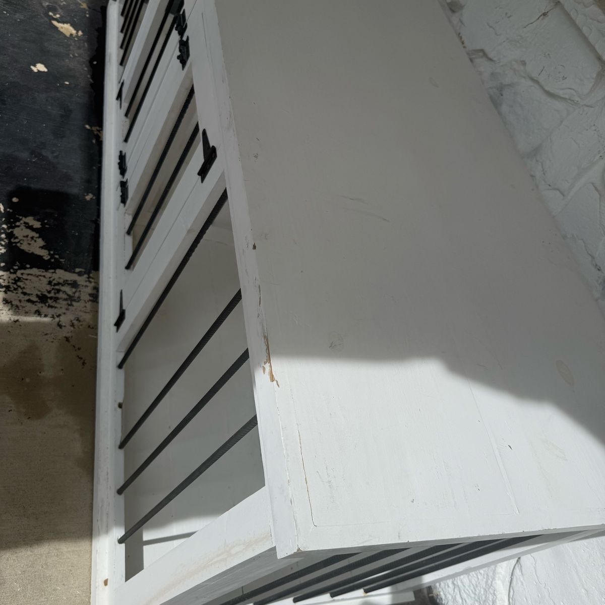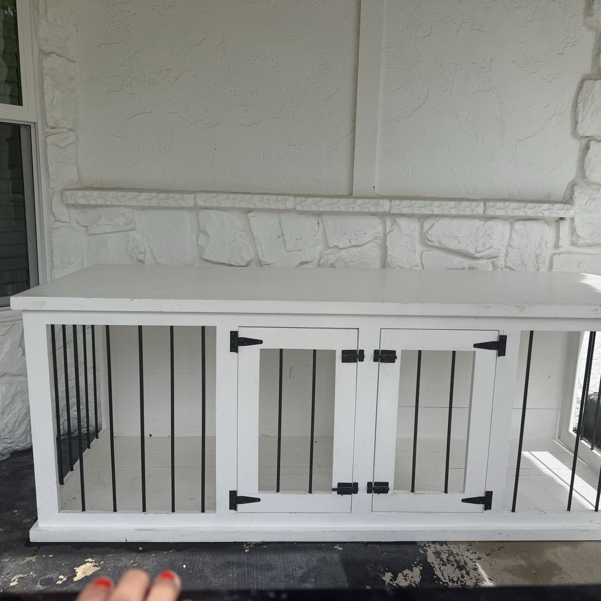 Double dog crate fits two standard poodles fine. Paint has some wear but with a paint job it can look great! Solid and sturdy