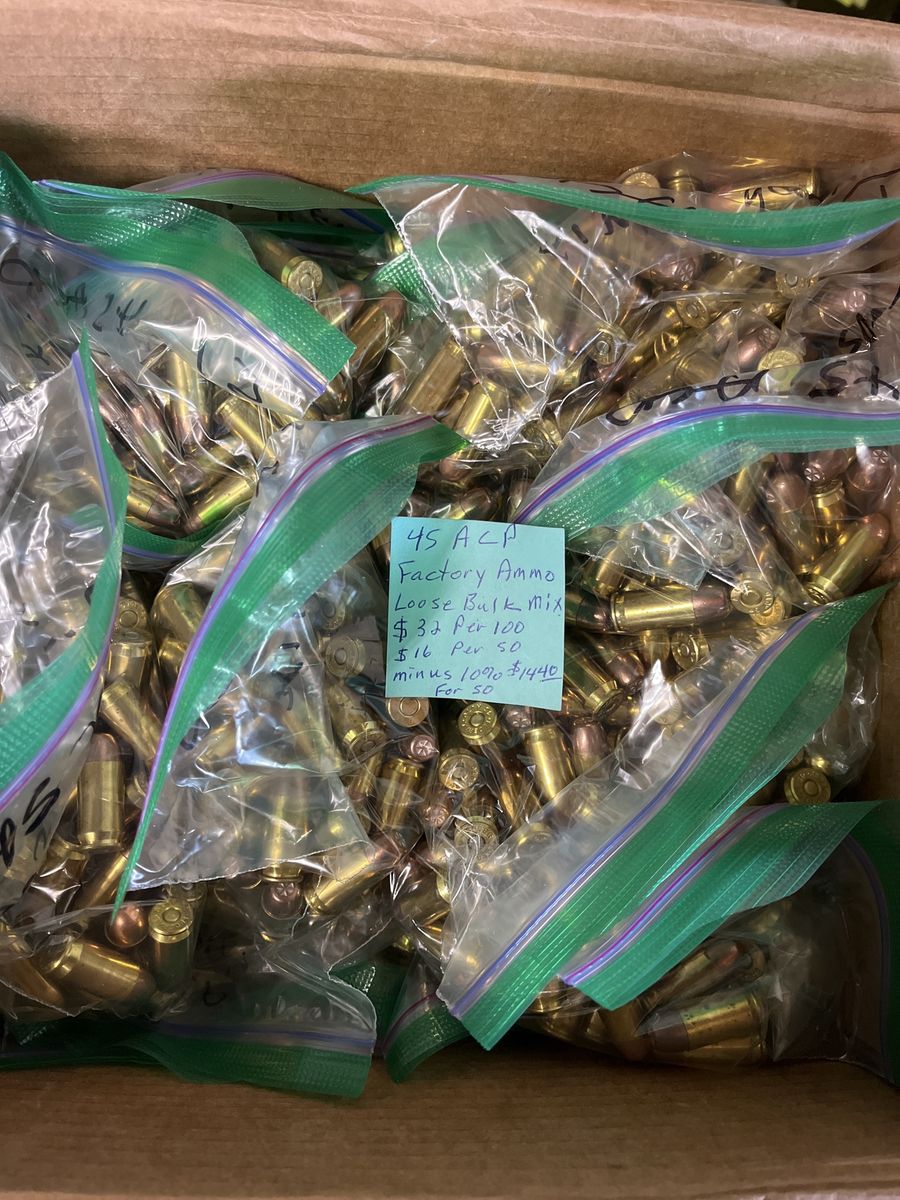 45 acp loose bulk packed. Mixed headstamp. 51 rounds in a bag for $14.40. 100 for $32-10%=$28.80. 1700+- available. Cash please. Please see my other ads. Thanks, Joe.