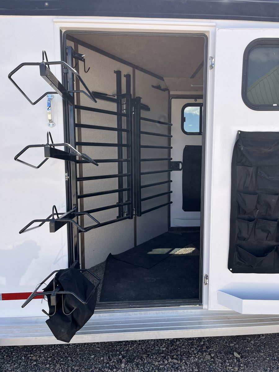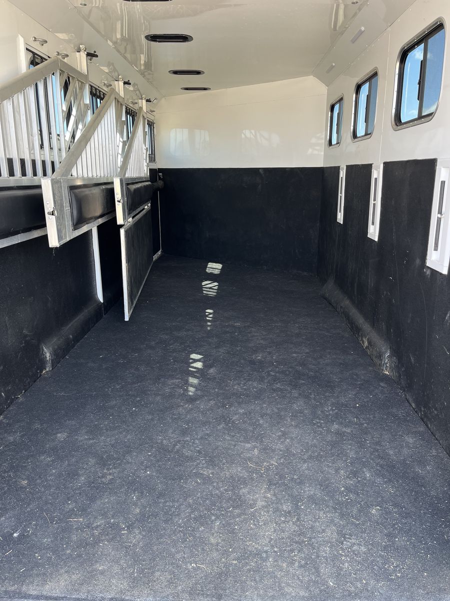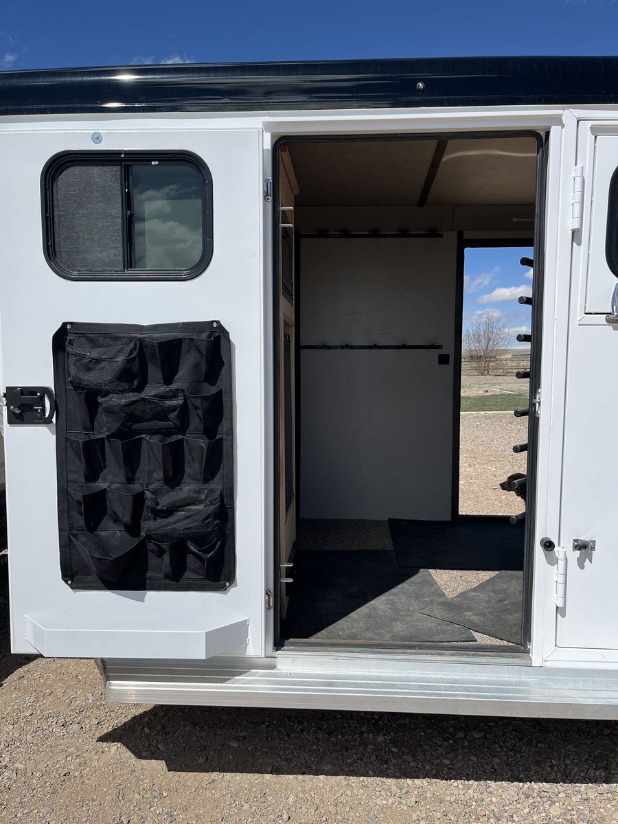 This beautiful 4 horse is flawless. We bought it brand new and used it probably a dozen times to Idaho. It is prepped with generator connections. First stall is stud stall divider. Normal dividers after that. Drop down windows have bars to keep horses heads safely inside trailer. Heater and fridge has been added to make it a weekender, but can be removed with no damage showing to trailer. Very roomy tack room no stains in carpet from mud or anything. Tires,brakes,and lights all work and look just like from factory. No dents,scratches,or kick marks anywhere. Hydraulic jack for easy hook/unhook. Selling cause family has decided to not do horse activity anymore. located in Big Piney ,Wy