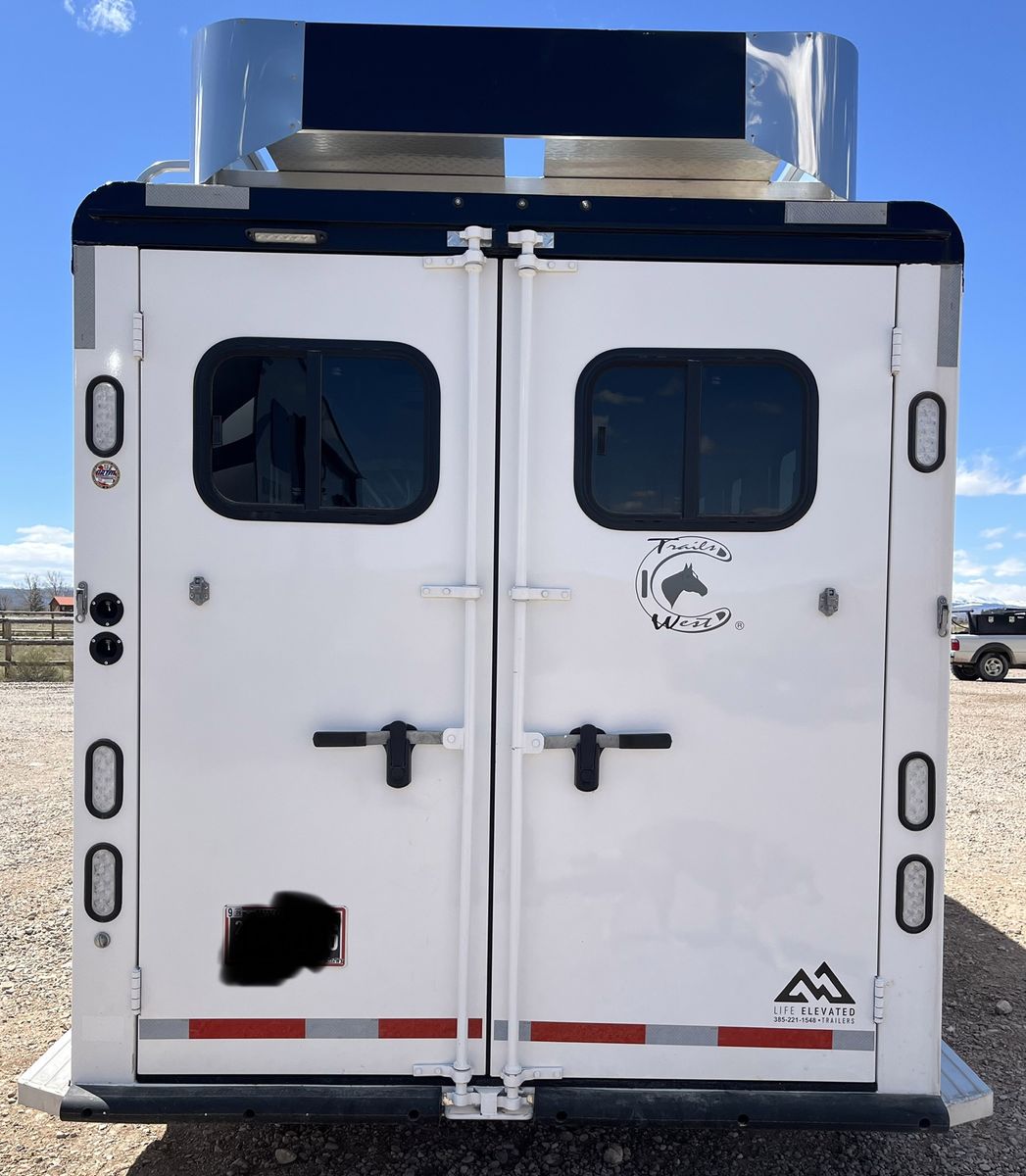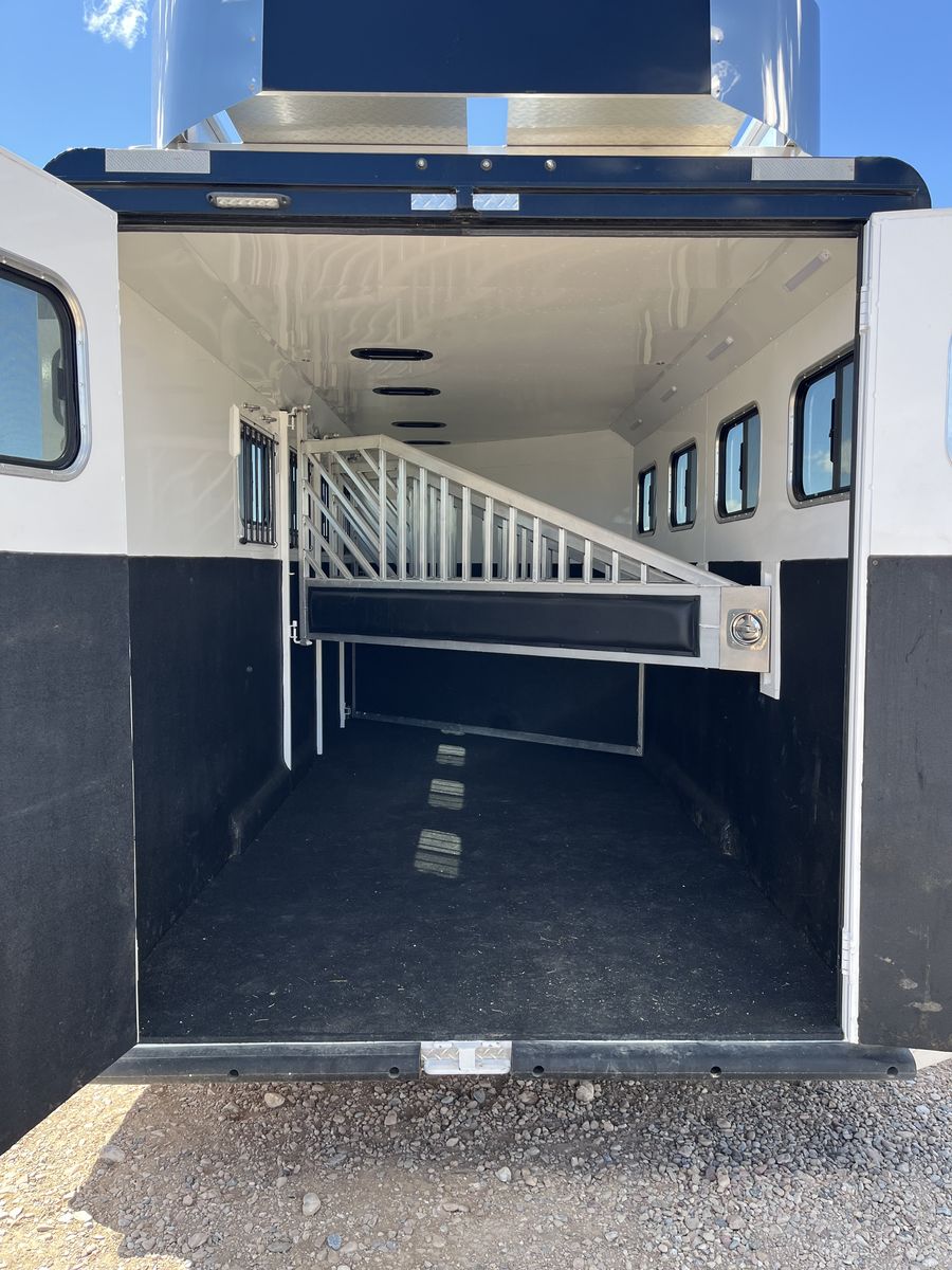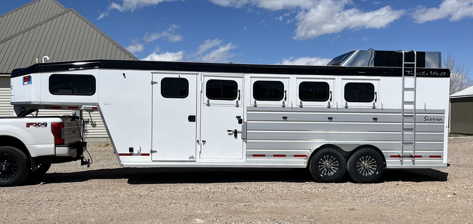 This beautiful 4 horse is flawless. We bought it brand new and used it probably a dozen times to Idaho. It is prepped with generator connections. First stall is stud stall divider. Normal dividers after that. Drop down windows have bars to keep horses heads safely inside trailer. Heater and fridge has been added to make it a weekender, but can be removed with no damage showing to trailer. Very roomy tack room no stains in carpet from mud or anything. Tires,brakes,and lights all work and look just like from factory. No dents,scratches,or kick marks anywhere. Hydraulic jack for easy hook/unhook. Selling cause family has decided to not do horse activity anymore. located in Big Piney ,Wy