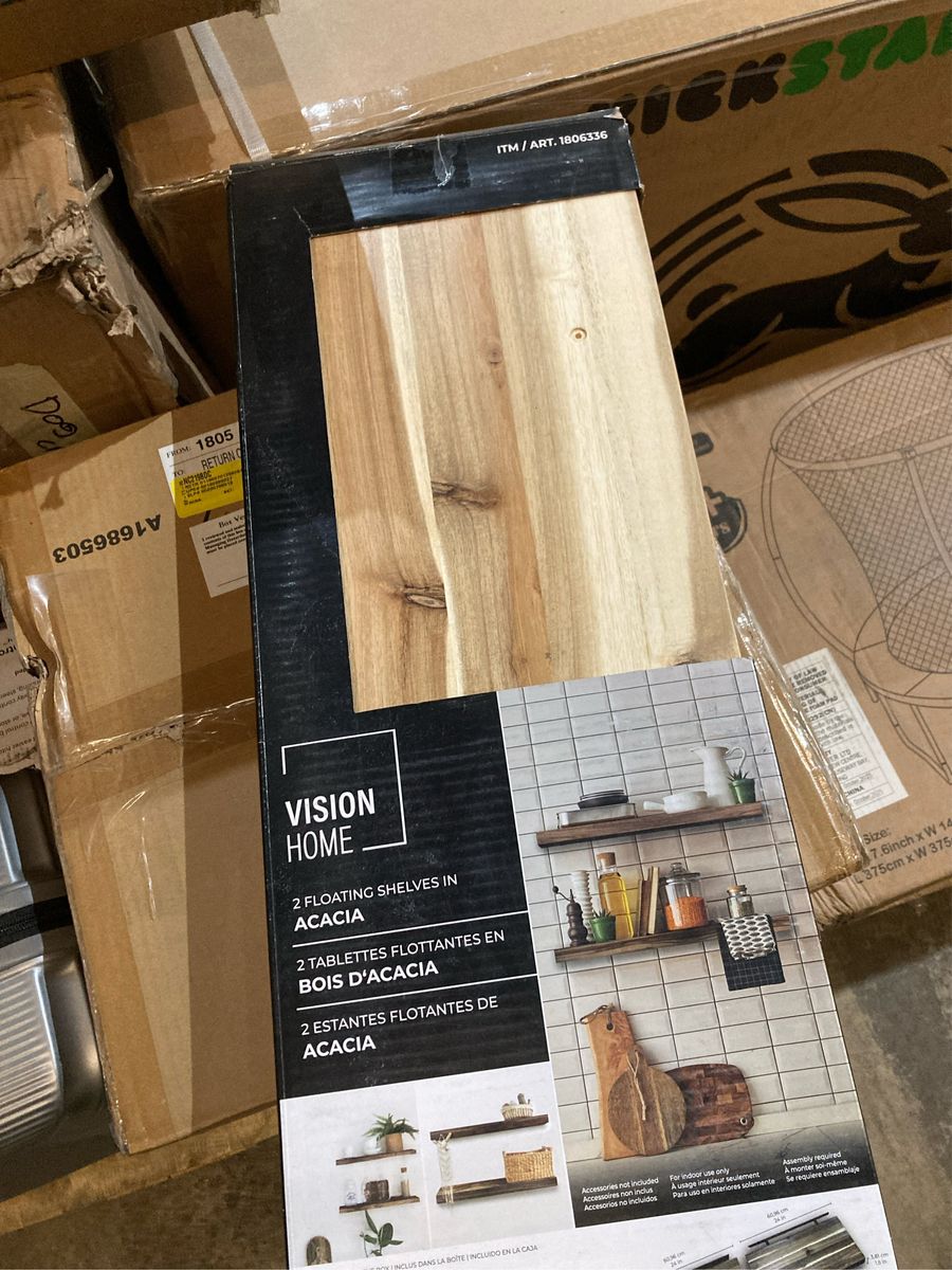 Set of 2 shelves 24" x 9.5" x 1.5" each Acacia Easy to install For indoor use only