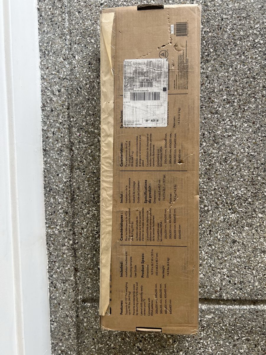Selling a universal TV wall mount that fits most TVs up to around 75 inches. Box has some wear, but everything inside is unused and in great condition. Perfect if you’re looking to mount your TV and save space or get a cleaner setup.