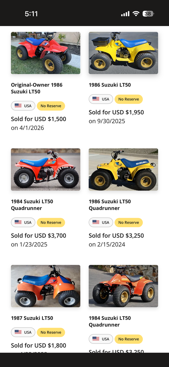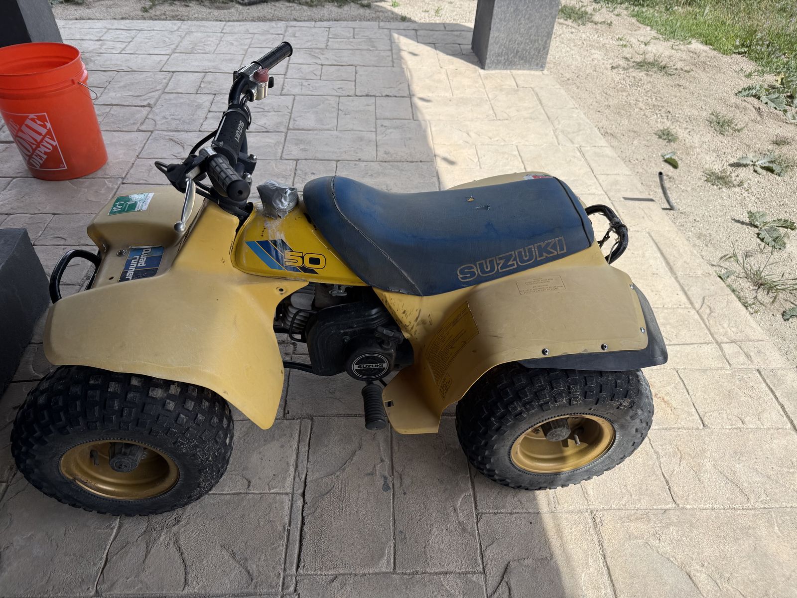 VenmoAll original 1986 Suzuki lt50. Very little use- was mine when I was a kid. Runs great. Only issue is the gas tank needs to be de-rusted, as it clogs up the carborator if you don't run it regularly. Also needs a new gas cap as the current one is cracked