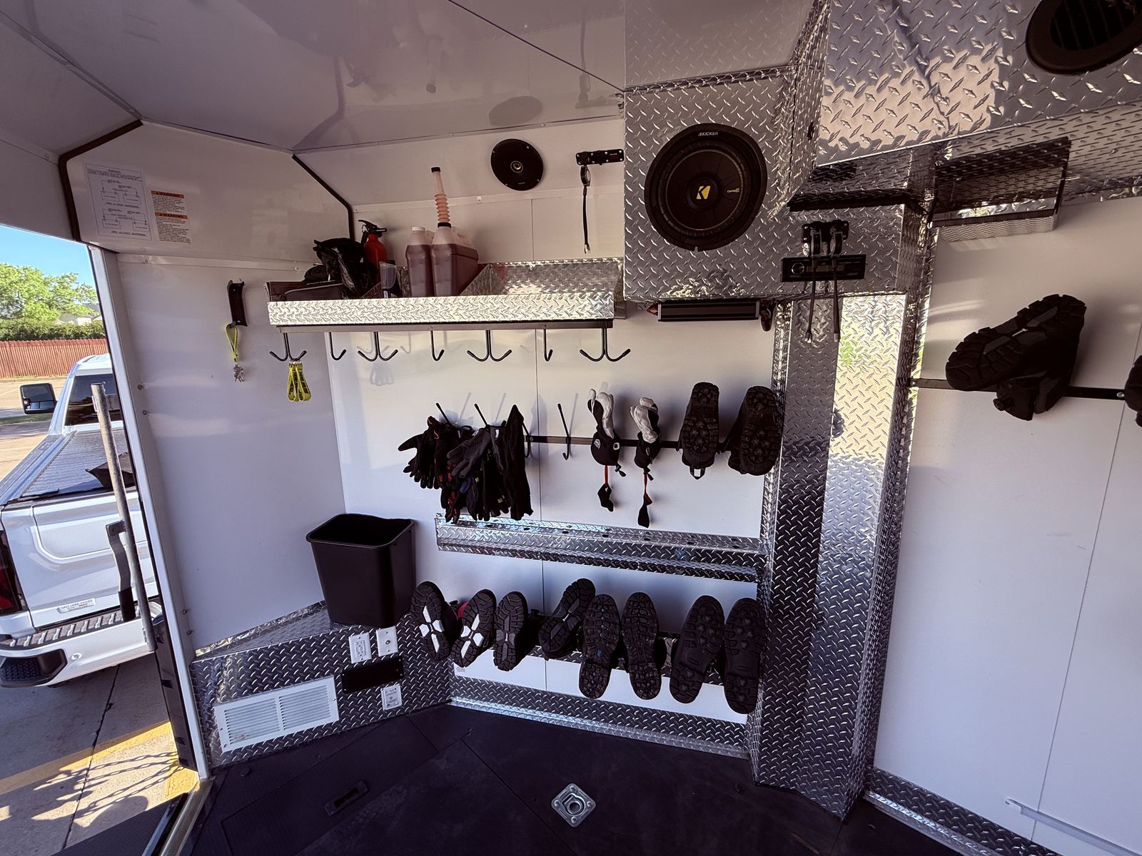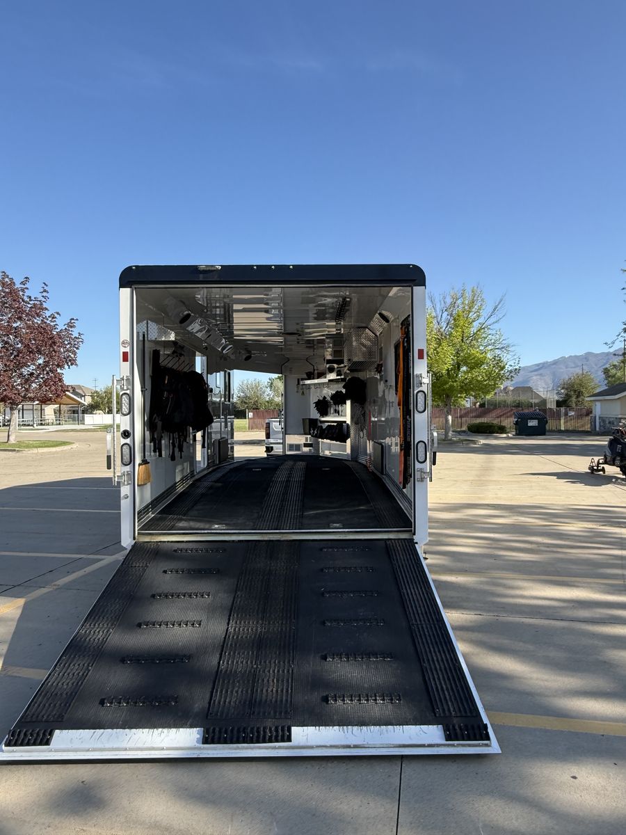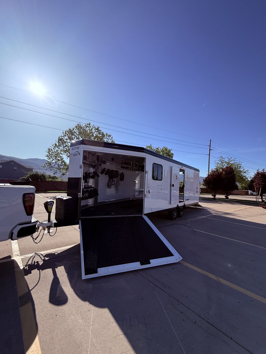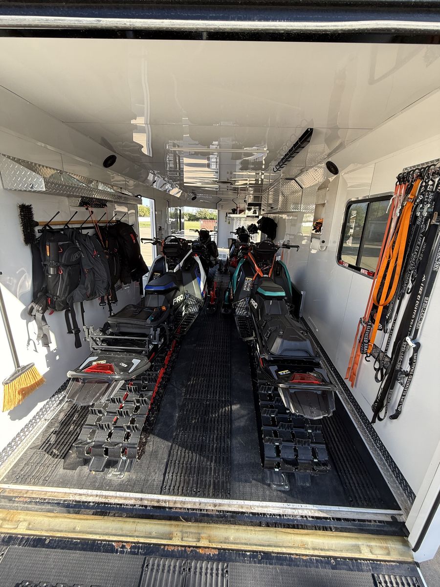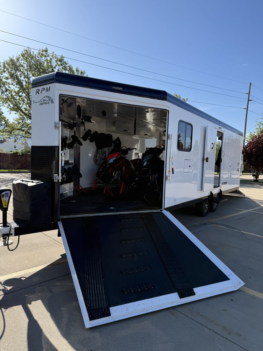 2023 Trails West RPM 28 BP Burandt Backcountry Edition, with Extreme Cold Package. Fantastic trailer that can be used year round. •Heated Helmet Cabinet •In Floor Track Melt •Factory Installed D Rings in floor for added side by side tie down points. • Added coat hangers, shelve, onsie hangers rear. • New Tires October 2024 •Serviced annually, all lights, brakes work well * Blue tooth strereo system.